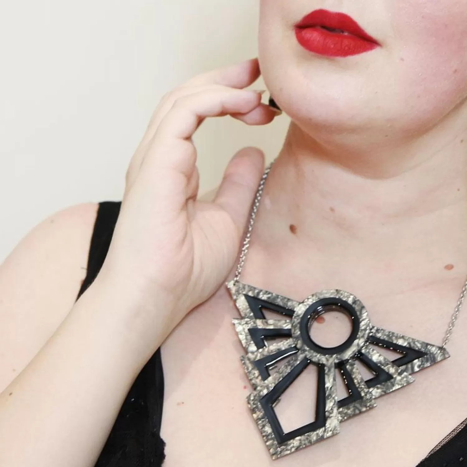 Make A Statement For The Ages With This Elegant Art Deco Necklace. Hand Assembled From Some Of Our Finest Textured Resins And Featuring Hand-Painted Details, This One Will Have You Turning Heads Even In The Most Exclusive Company.