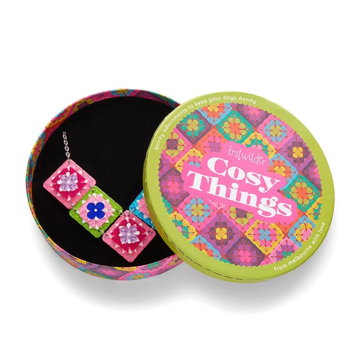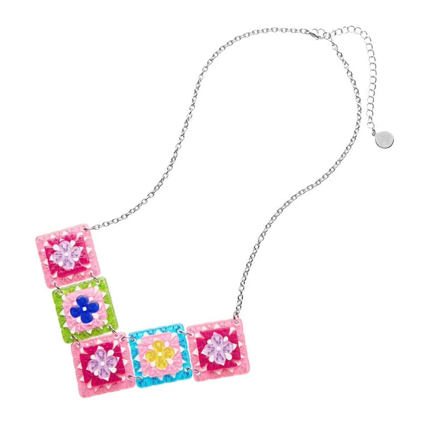 Nanna’S Knitting Hobby Has Been Turned Into Wearable Resin Art With This Granny Square Inspired Statement Necklace From Our Cosy Things Collection. Hand-Assembled From Colourful Resin, With Laser-Etched Details And Classic Erstwilder Charm, Mosaic Motifs Is An Ideal Accessory For All Contemporary Crochet Enthusiasts And Can Be Worn With Our Matching Earrings Or Brooch.