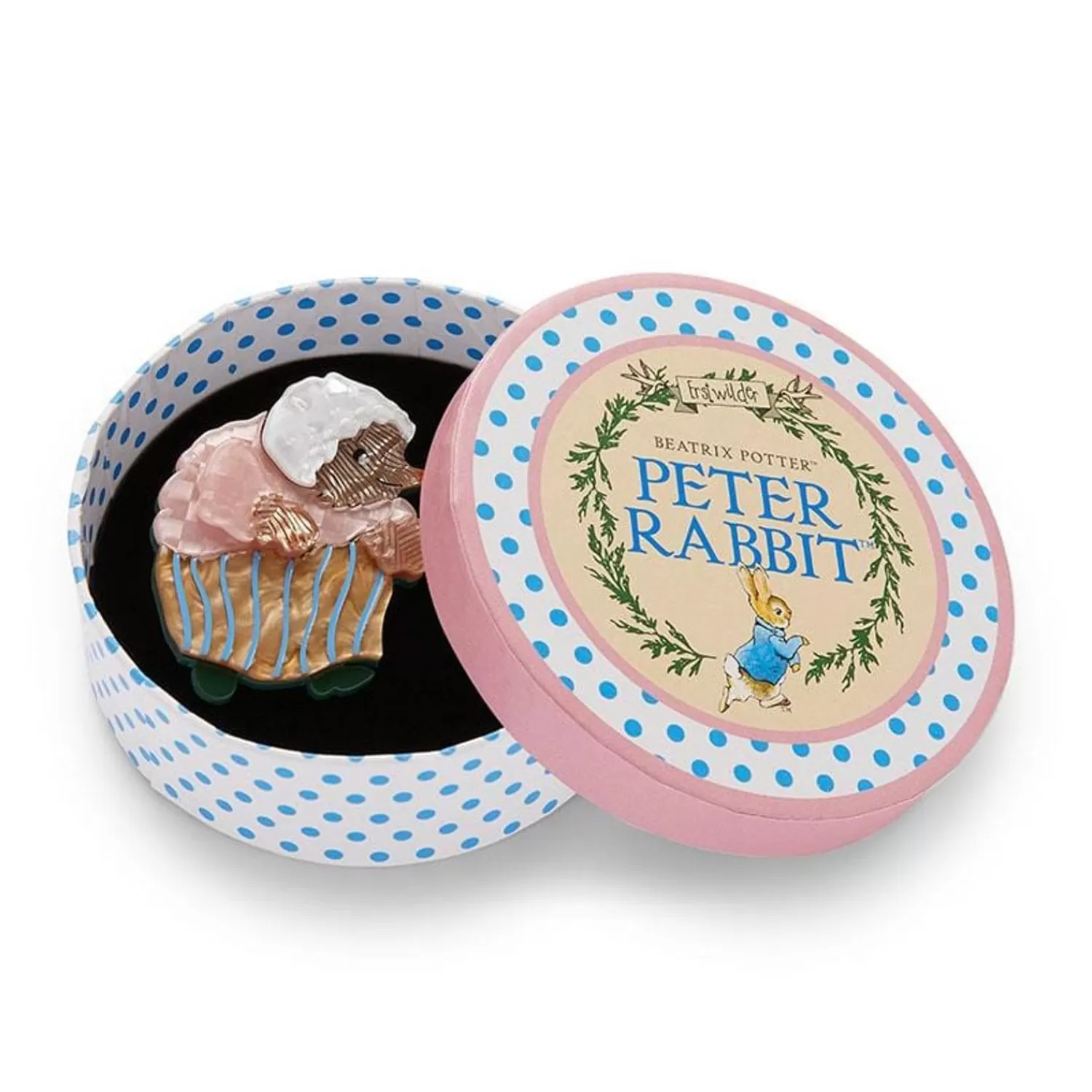 Hand-Assembled From Pleasing Patterend And Textured Resins, This Terrific Beatrix Potter Mrs. Tiggy-Winkle Brooch Features Hand-Finished Details. Part Of Our Peter Rabbit X Erstwilder Collaboration, Each Piece Comes Packaged In Our Special Edition Gift-Box With An Adorable Peter Rabbit Swing Tag.