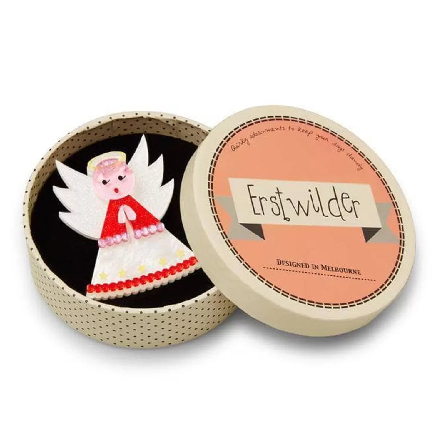 An Adorable Angel Brooch To Sit Atop Your Christmas Tree Or, Better Yet, Your Christmas Sweater. This Piece Has Been Hand-Assembled From A Combination Of Textured And Glitter Resins And Features Hand-Painted Details.