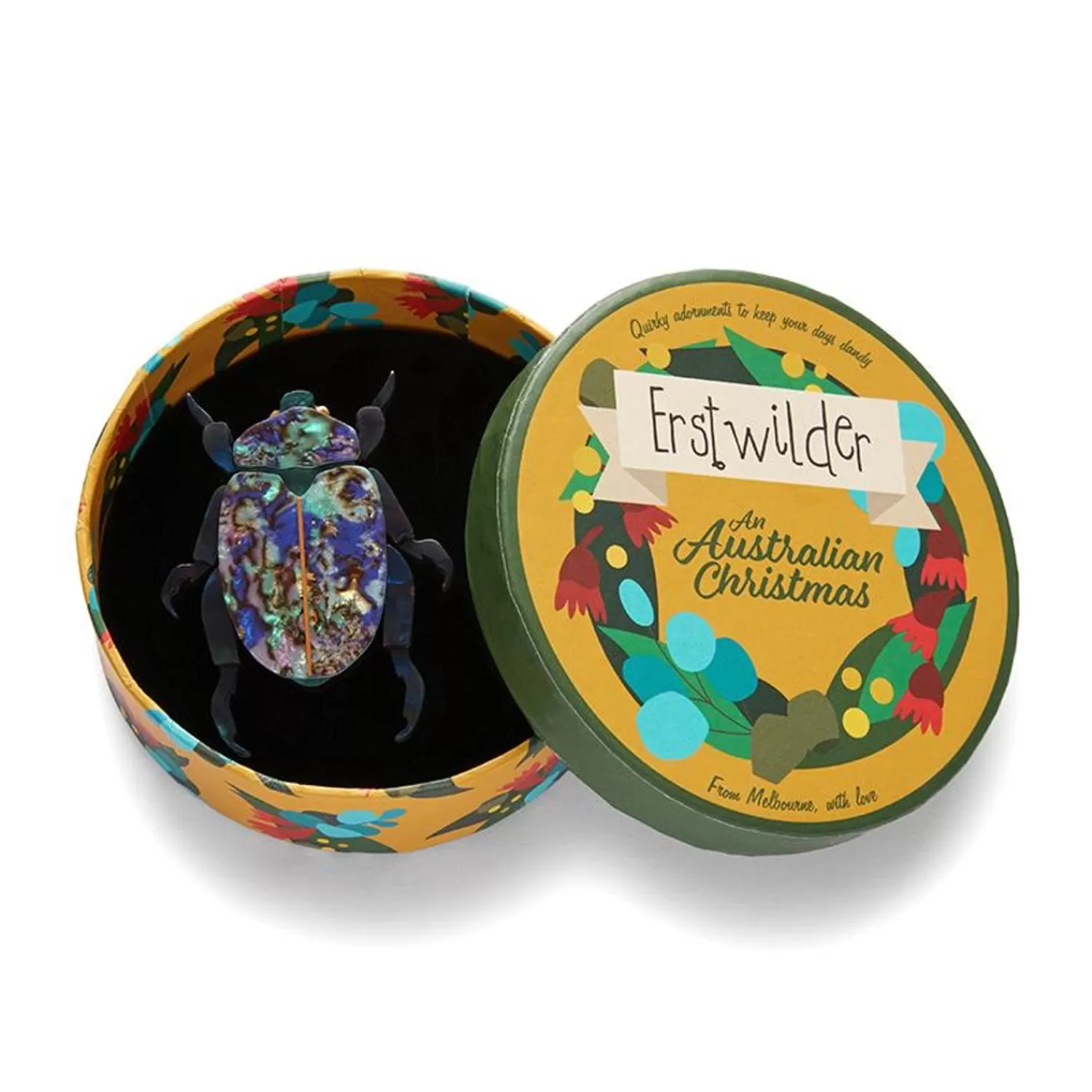 Hand-Assembled From Textured Resins And Featuring Hand-Painted Details, This Australian Christmas Beetle Brooch Is Far Less Noisey, But No Less Striking Than The Real Deal.
