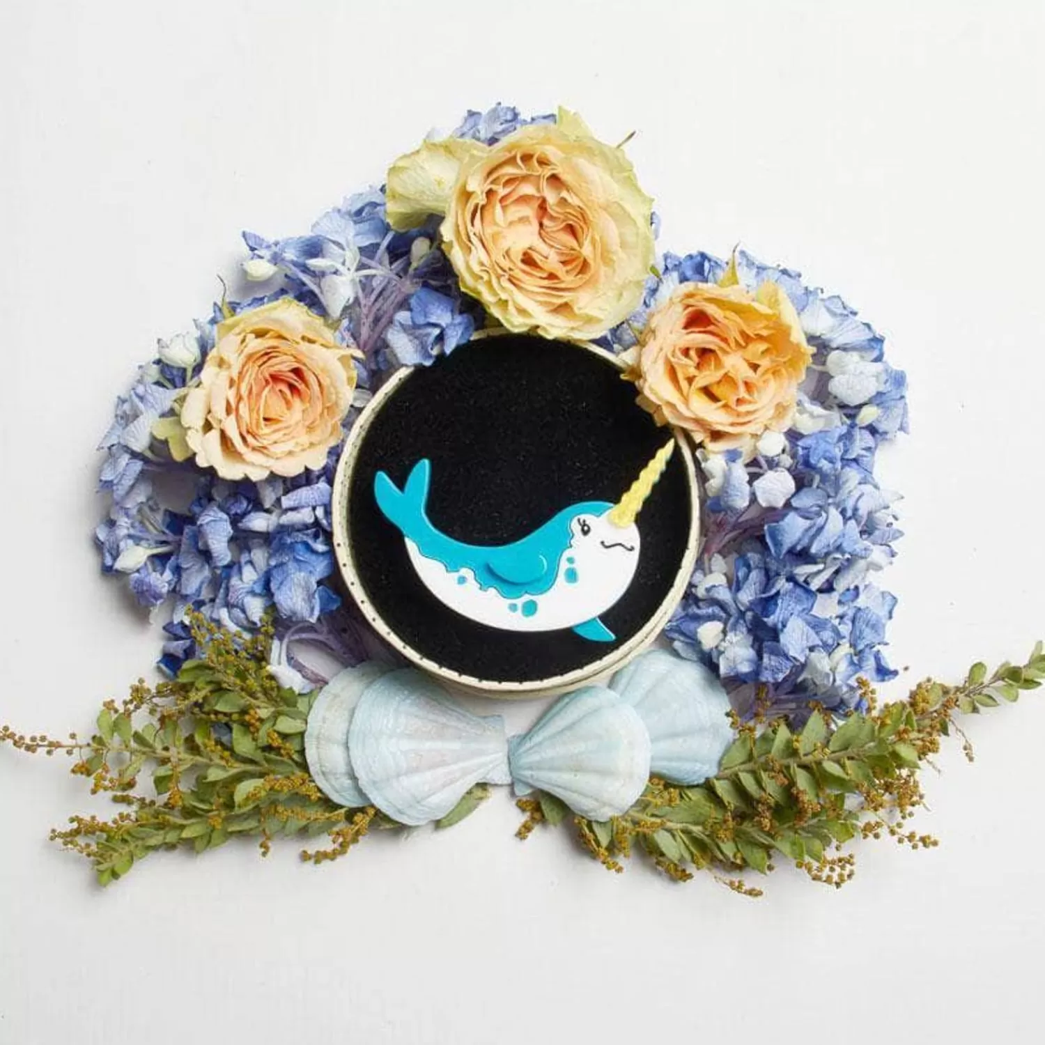 Ahh, The Mythical Unicorn Of The Sea, Only This Guy Isn’T A Myth! Erstwilder’S Adorable Narwhal Brooch Has Been Hand-Assembled From A Combination Of Glitter And Solid Resins And Features Hand-Painted Details. Careful Now, Those Resin Tusks Are Priceless.