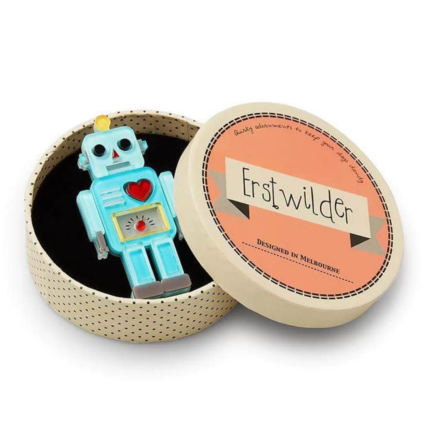 Bleep Bloop, That?S Robot For Nice To Meet You. Our Little Robot Brooch Has Been Hand-Assembled From A Selection Of Solid And Glitter Resins And Features Hand-Finished Details. This Vintage Robot Harkens Back To A Time Of Key Turning And Cogs Whirring, Well Before Toys Were All Electronic.