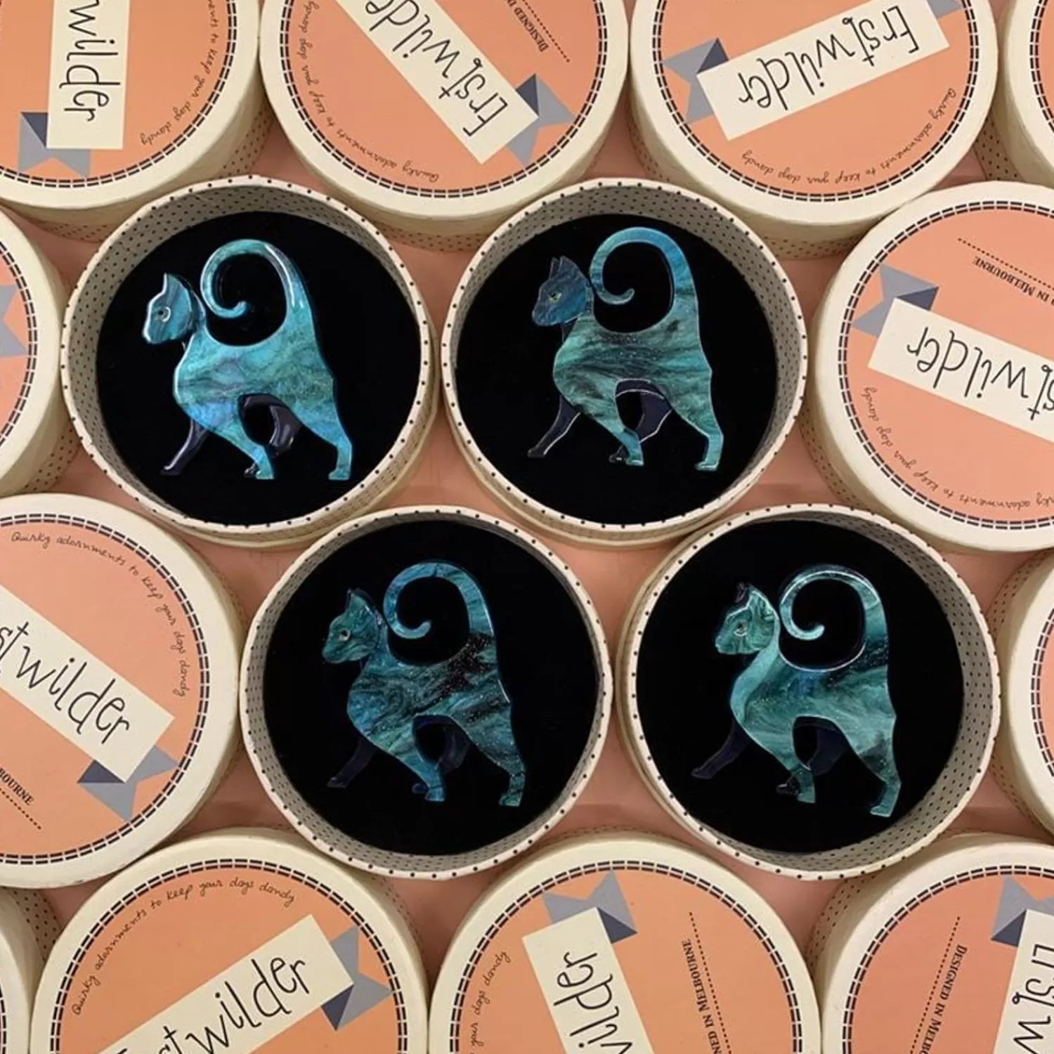 Please Note Each Piece May Differ From One To Another, And To The ‘On The Prowl Cat’ Brooch Pictured. The ‘On The Prowl Cat’ Brooch Features A Unique Green Marbled Resin, The Colours Can Vary From A Rich Jade Hue, To Lighter Green Colours, With More Pronounced White Ribbons. Just Like Real Marble Each Pattern Is Different And Makes Each Brooch Totally Individual And Unique.