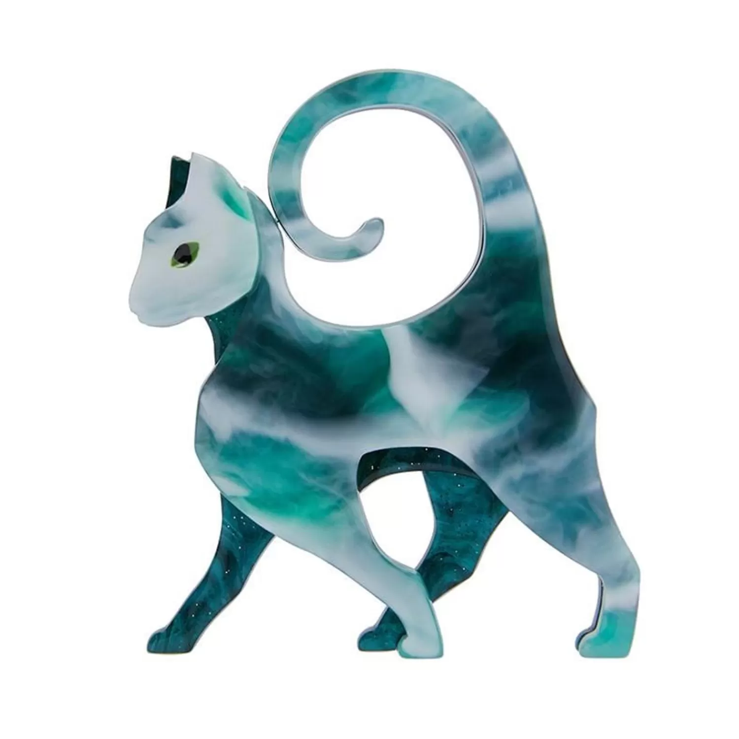 On The Prowl, Ready To Pounce, This Kitty Is A Zoological Icon Of Grace. The Hand-Assembled Details Come Together To Frame The Iconic Green And White Marbled Resin And Like Cats Themselves No Two Are The Same. A Unique Design Bursting With Attitude.