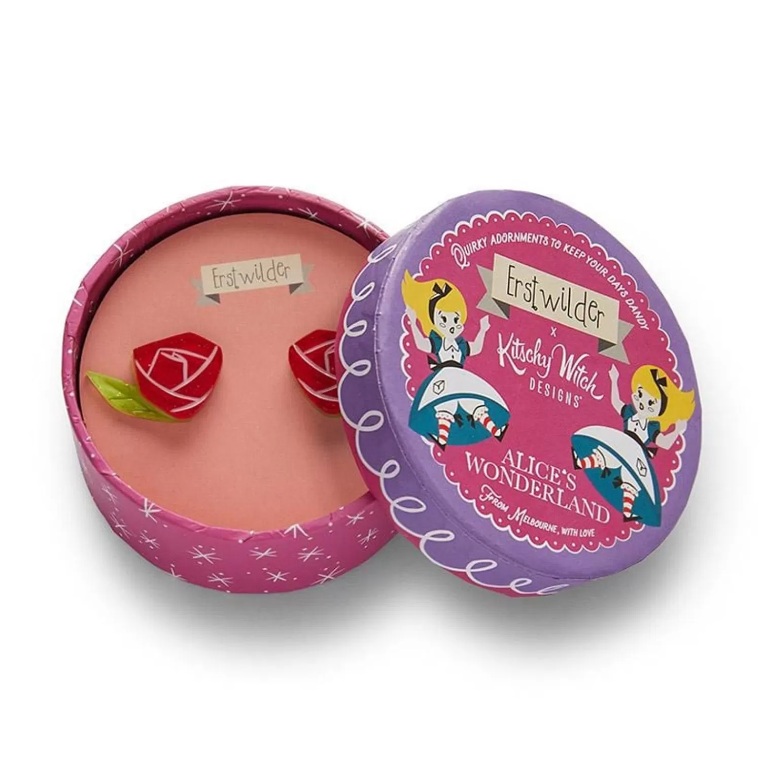Part Of Our Alice’S Wonderland Collaboration With Kitschy Witch, These Hand-Assembled Red Rose Earrings Use A Radiant Co…