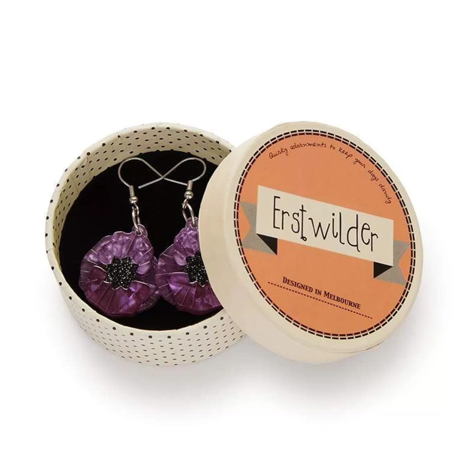 These Elegant Purple Poppy Drop Earrings Are Made From A Combination Of Textured And Glitter Resins. The Purple Poppy Is…