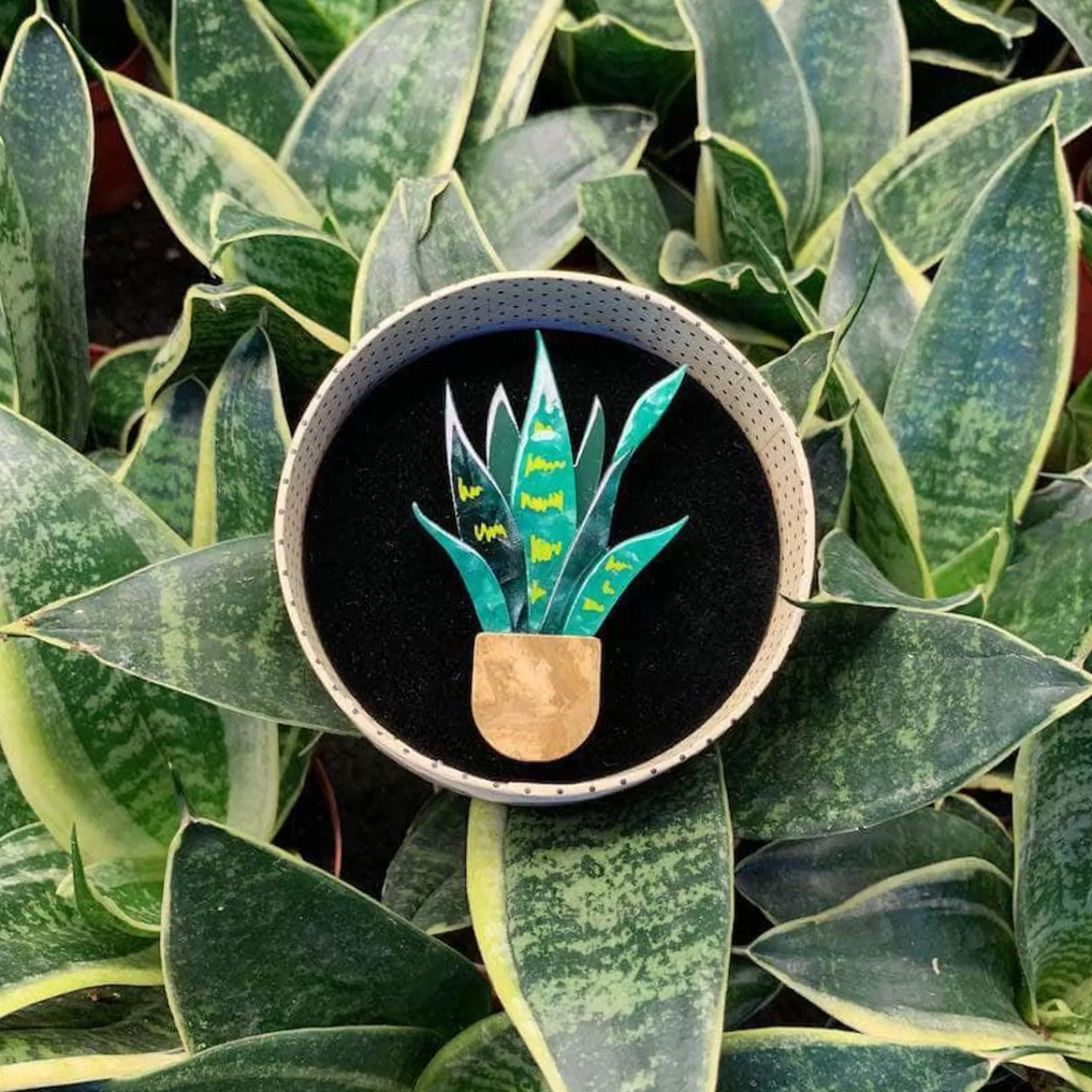 With An Alternate Name Of ‘Snake Plant’, We Promise That Our Mother-In-Law’S Tongue Pot Plant Brooch, Hand-Assembled From Glitter, Pattern And Textured Resins, And Featuring Hand-Painted Details, Is As Memorable As It’S Marvelous Monikers.
