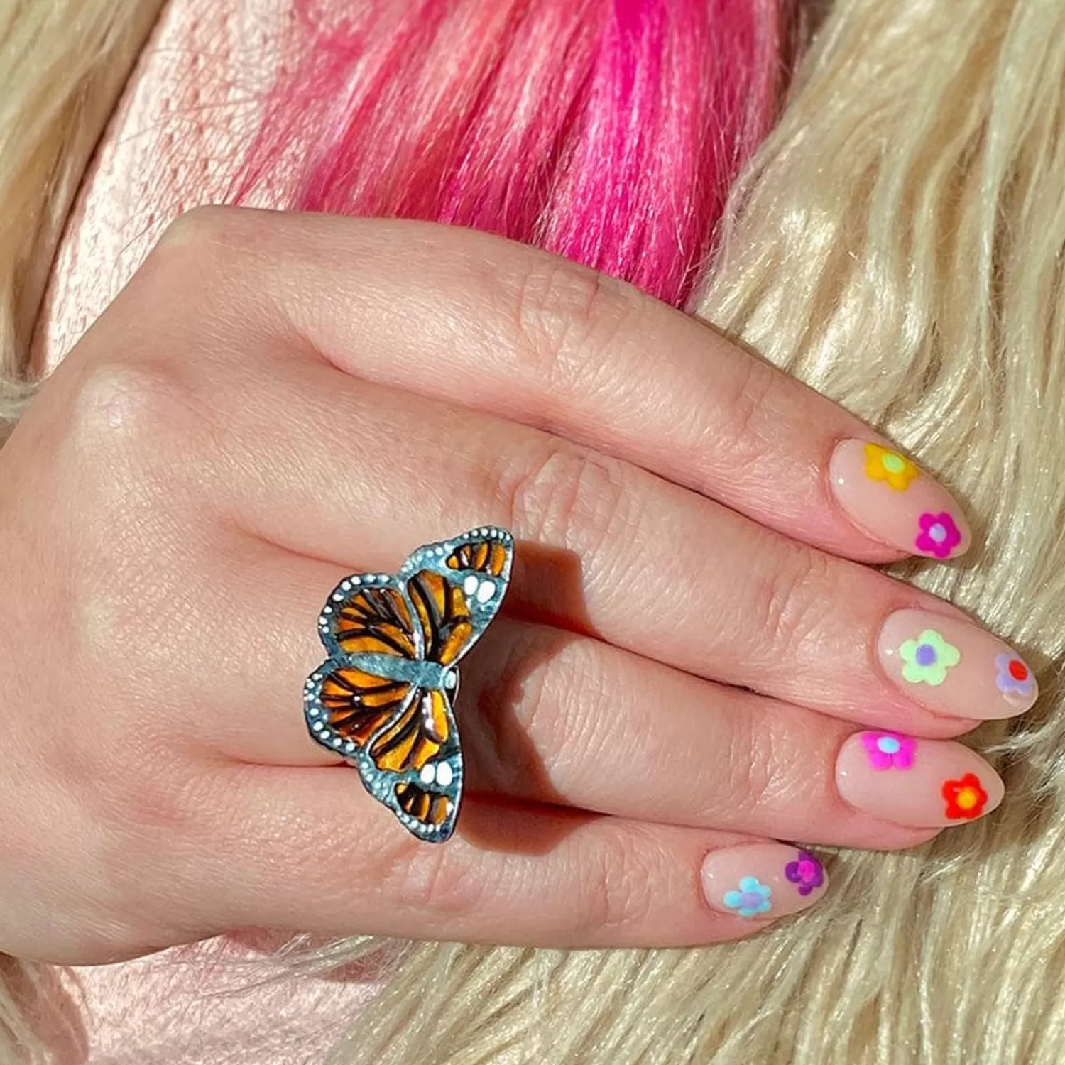 A Butterfly Flaps Its Resin Wings And Just Like That, Your Outfit Is Complete. Hand-Assembled From Solid And Textured Resins, And Featuring Hand-Painted Details, Pairing This Beautiful Statement Ring With Our Prince Of Orange Hair Clips, Brooch Or Earrings Will Have You Feeling Like Royalty.