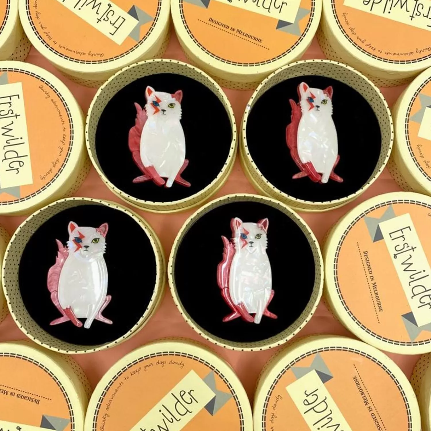 This Kitty Is Sure To Be An Instant Star. Just Add Water And Stir. Inspired By The Man, The Legend, David Bowie, This Cat Brooch Is Made From Textured Resin With Hand-Painted Details. Bowie Is Known For Saying He Always Wanted To Be Something More Than Human. Well, Mission Accomplished.