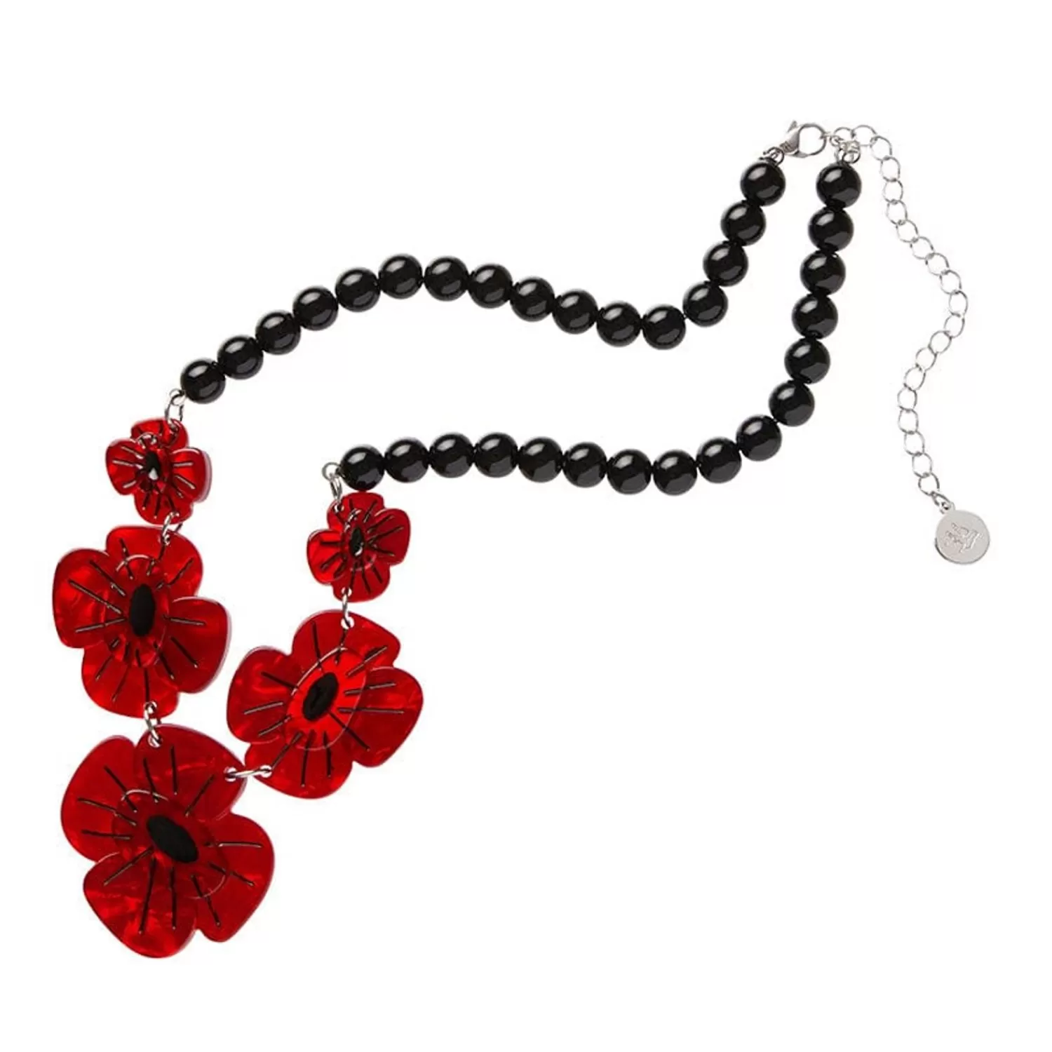 This Elegant Remembrance Poppy Necklace Serves As A Beautiful Reminder Of The Sacrifice Of All Those Who Fought And Died In The Defence Of Freedom The World Over. It Is Crafted From A Combination Of Red And Black Textured Resins On A Black Beaded Chain.