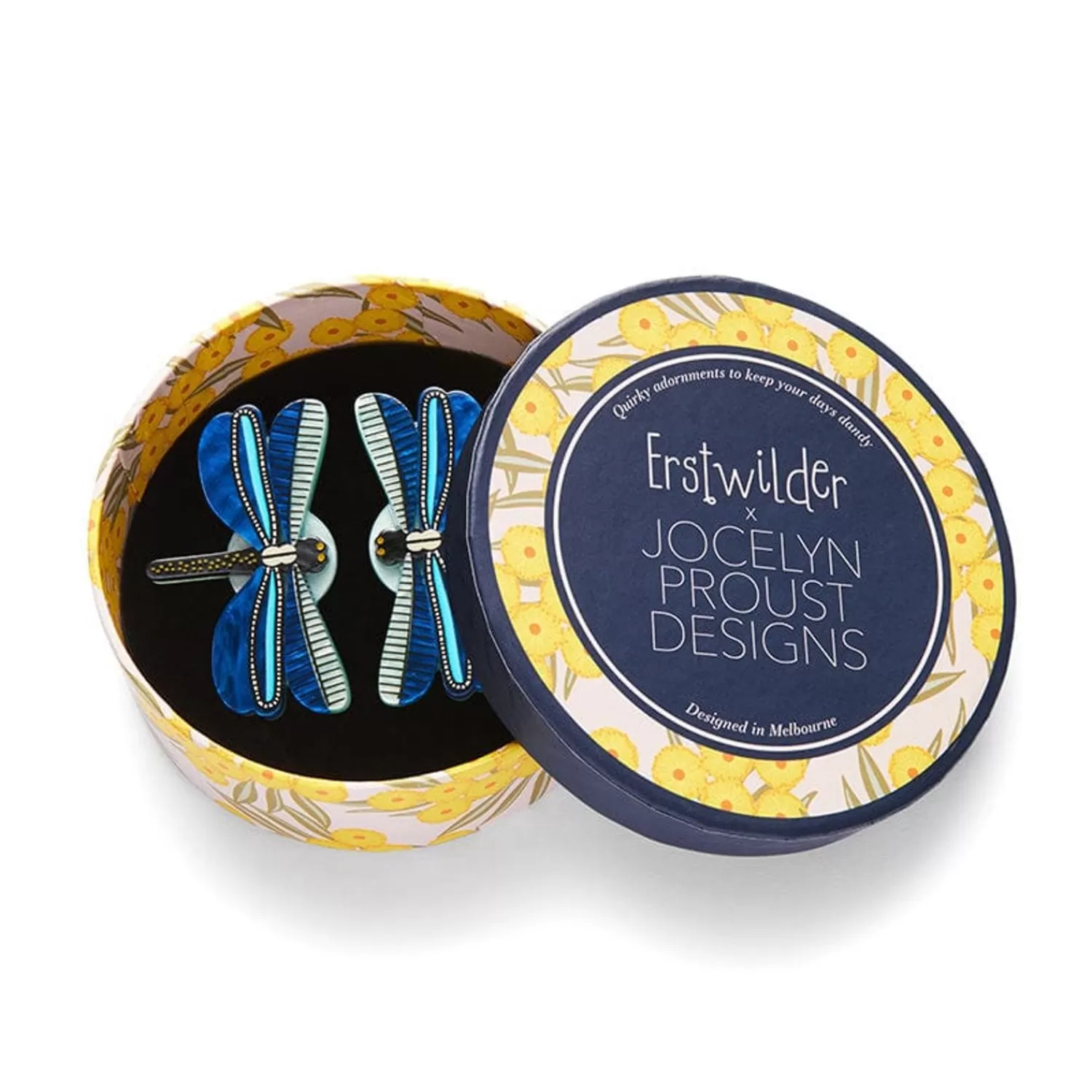 Hand-Assembled From A Selection Of Colourful Resins And Featuring A Combination Of Printed And Painted Details, These Bright Blue Dragonfly Hair Clips Are Part Of The Third Erstwilder X Jocelyn Proust Designs Collaboration. Capturing The Essence Of Their Fast-Moving Inspiration, This Sapphire Sky Dancer Duo Can Be Worn With Their Matching Brooch, Earrings And Hard Enamel Pin.