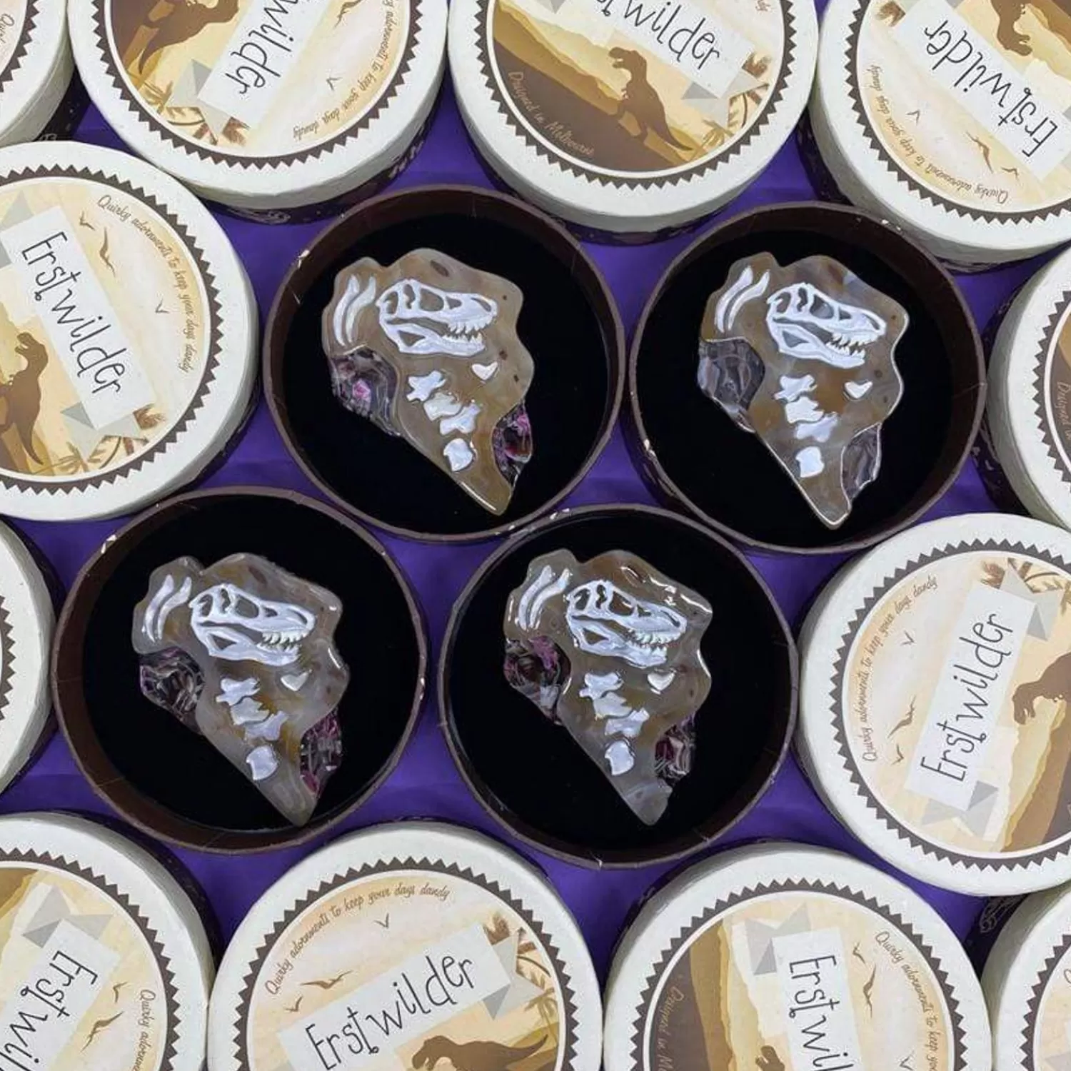 Join Our Dig Site As We Take A Journey To The Past. With A Gorgeous Collection Of Textured And Mottled Resins, Featuring A Hand-Assembled Display Of Bones All In One Beautiful Brooch. A Keepsake Of The Earth’S Collective History, Brought To You In Erstwilder’S Dinosauria.
