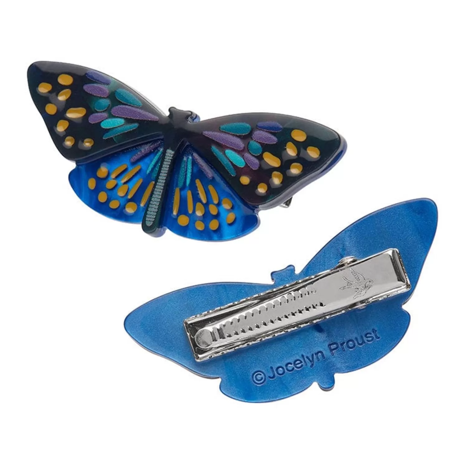 Hand-Assembled From A Selection Of Coloured Textured Resins And Featuring A Combination Of Printing, Painting And Highly Detailed Line Work, This Set Of Two Butterfly Hair Clips Is Part Of The Second Erstwilder X Jocelyn Proust Collaboration. Spread Your Accessory Wings Further By Pairing It With It’S Matching Brooch, Hair Barrett Or Statement Hair Claw.
