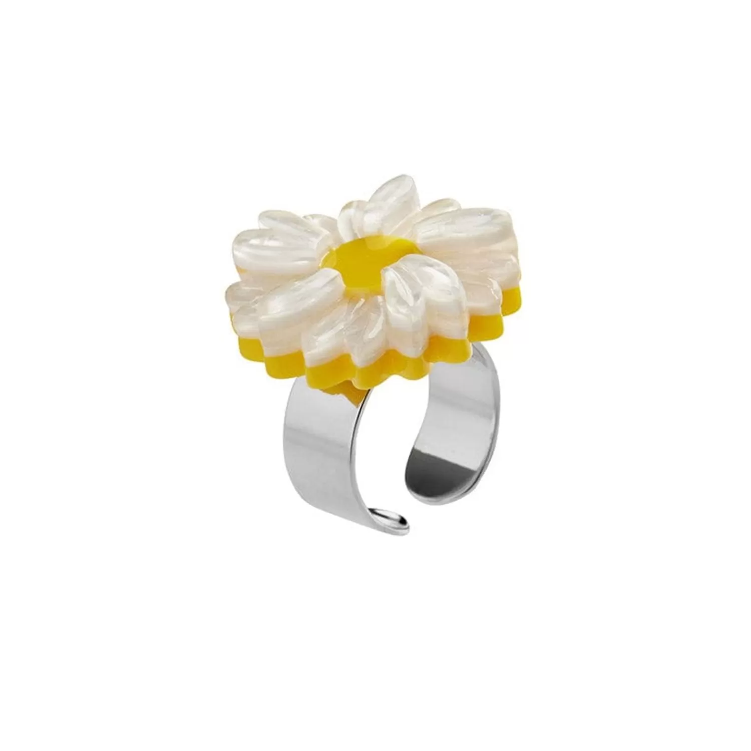She Loves Me, She Loves Me Not! Hand-Assembled From A Combination Of Striking Solid And Subtle Textured Resins, Our Daisy Flower Statement Ring Will Provide Everlasting Beauty In A Way That The Real Thing Can’T Compete.