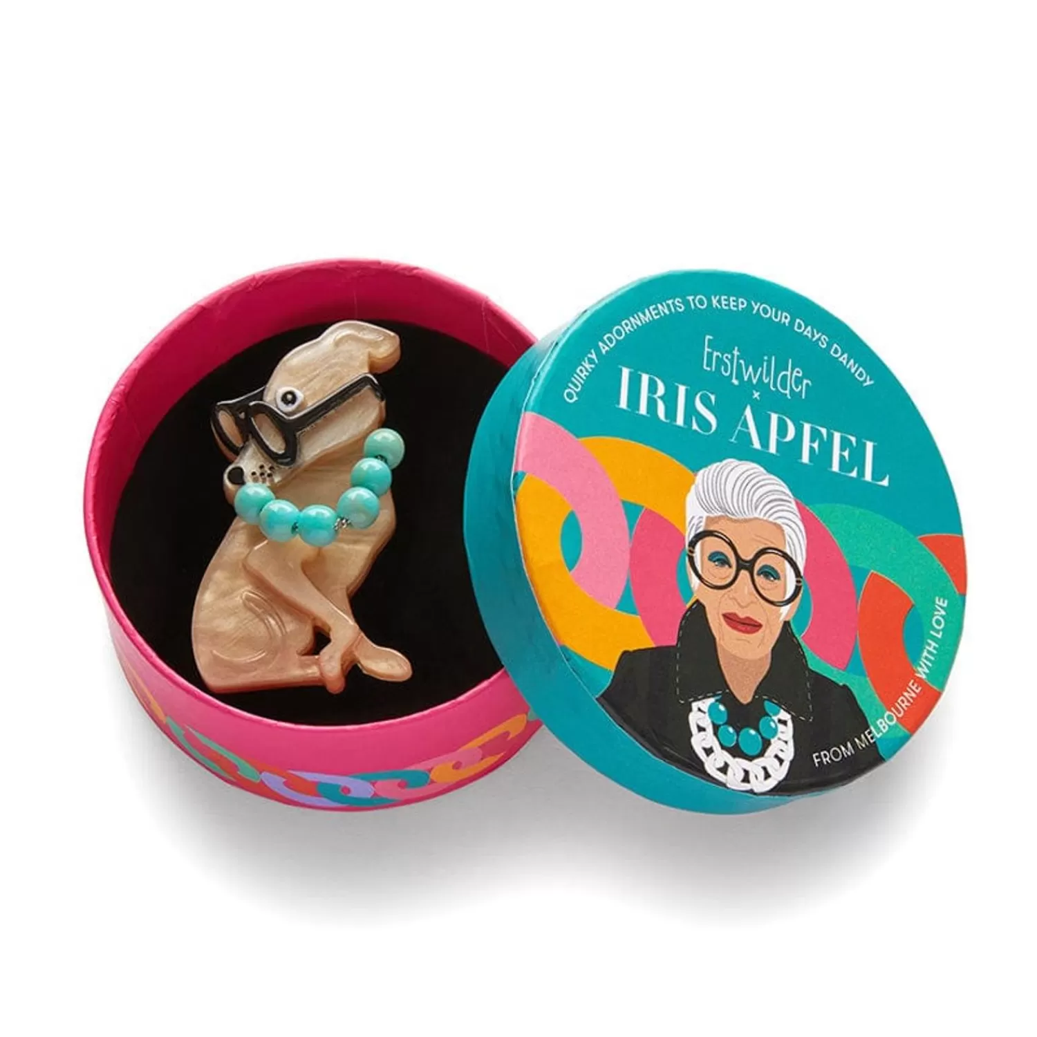 This Erstwilder X Iris Apfel Brooch Showcases The Iconic American Trendsetter And Interior Designer’S Style As Adopted By A Charismatic Canine. Hand-Assembled From Gorgeous Resins, With Hand-Finished Details, Just Like Iris This Dog Design Speaks To The Best Practice Of Trusting Your Instinct When It Comes To Style.