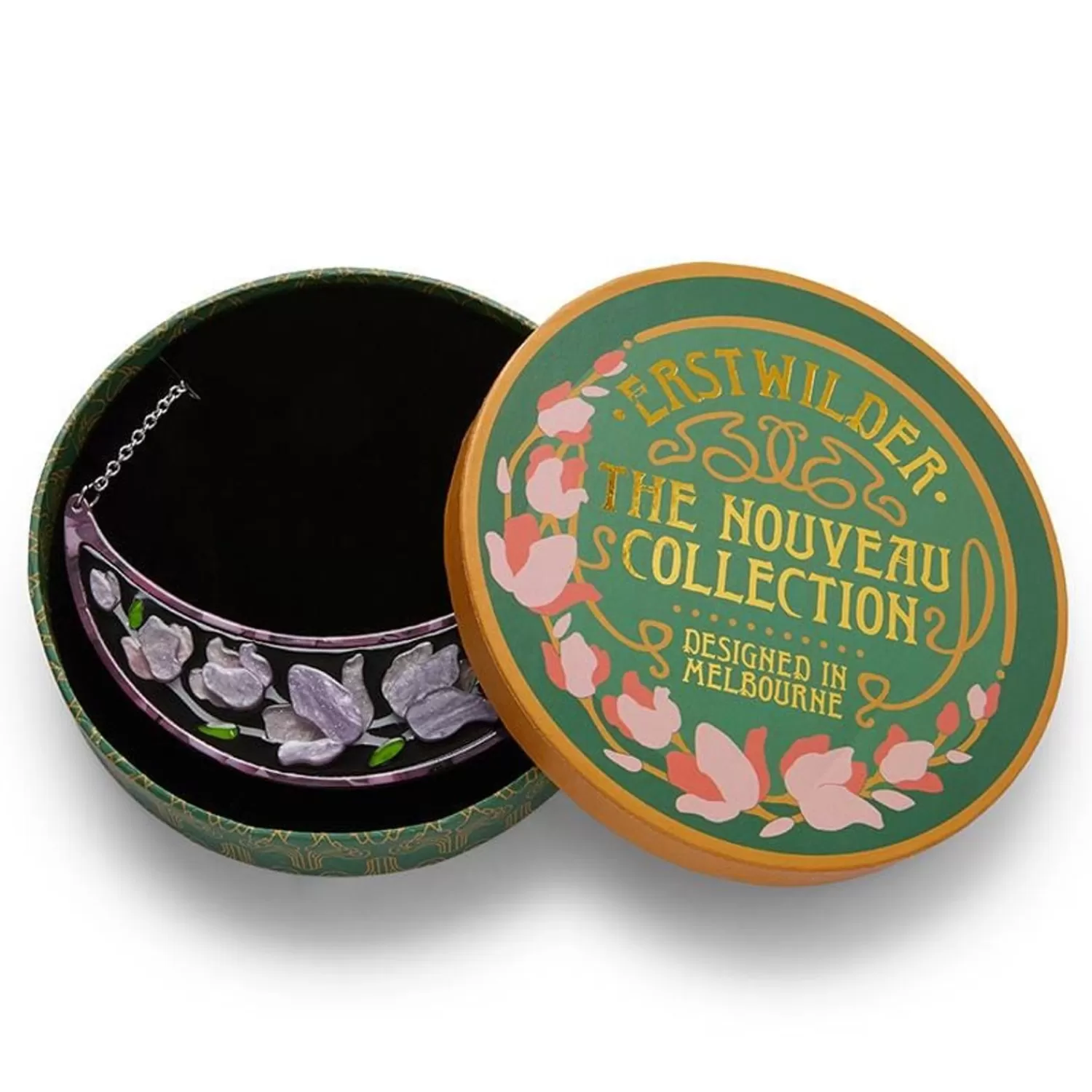 Beautiful Blooms Adorn This Dreamy Adornment. With A Combination Of Textured, Solid And Glitter Resins This Hand-Assembled Necklace Is A Statement Piece, Inspired By Art Nouveau. With Swirling Purples, This Ostentatious Outfit Addition Will Keep You Standing Out From The Crowd.