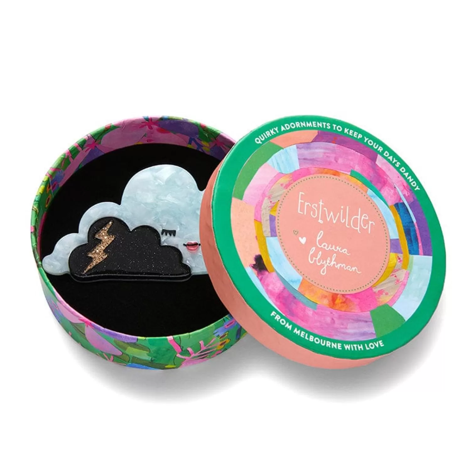 An Electrifying Storm Cloud Brooch To Add Some Excitement To Your Day, This Spirited Laura Blythman Design Has Been Hand Assembled From Glitter And Solid Resins. With Hand-Painted Details Adding Just The Right Amount Of Personality, You Can Pair This Darling Disrupter With Our Lainey The Rainey Brooch For A Winter-Appropriate One-Two Combo.