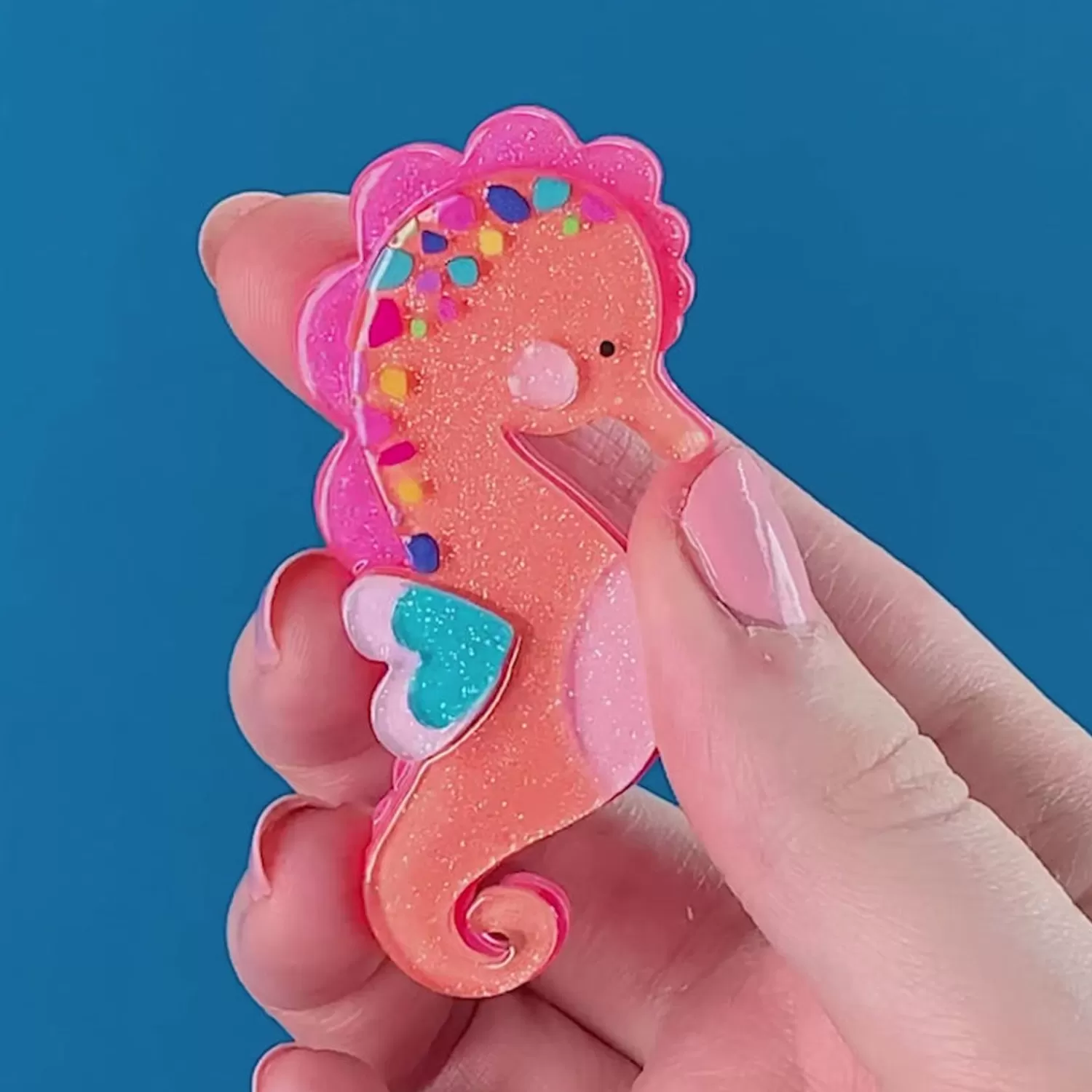 This Erstwilder X Kasey Rainbow Stevie The Seahorse Brooch Has Been Hand-Assembled From A Combination Of Colourful Resin…