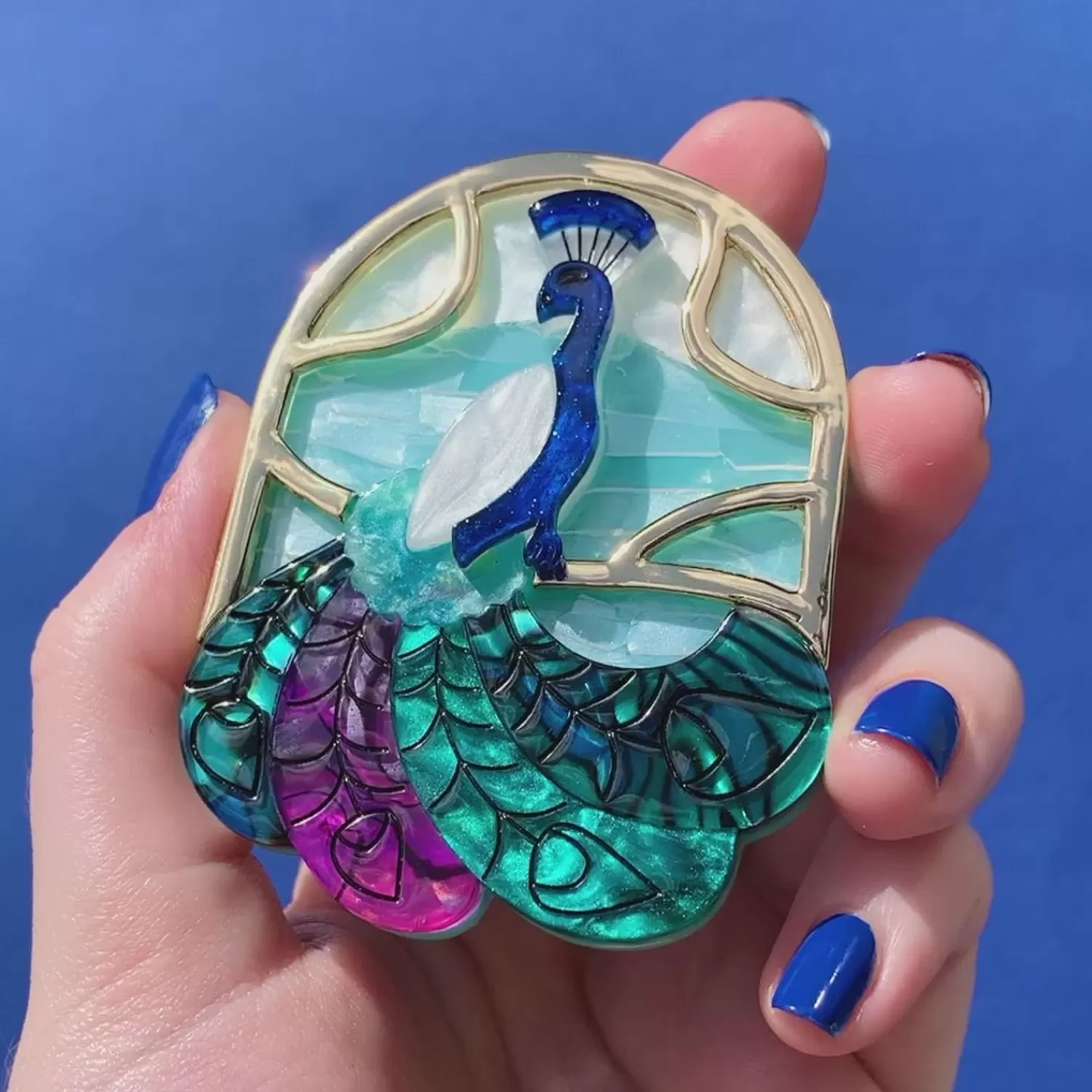 Unleash Your Inner Fashionista With This Art Nouveau Peacock Brooch From The La Belle Époque Collection. Hand-Assembled From Premium Textured Resins With Exquisite Hand-Finished Details And An Imitation Gold-Plated Metal Accent Creating An Elegant Frame Reminiscent Of The Stained Glass Of The Period, This Piece Can Be Worn On It’S Own Or Alongside One Of The Other Quintessential Nouveau Designs In This Release.