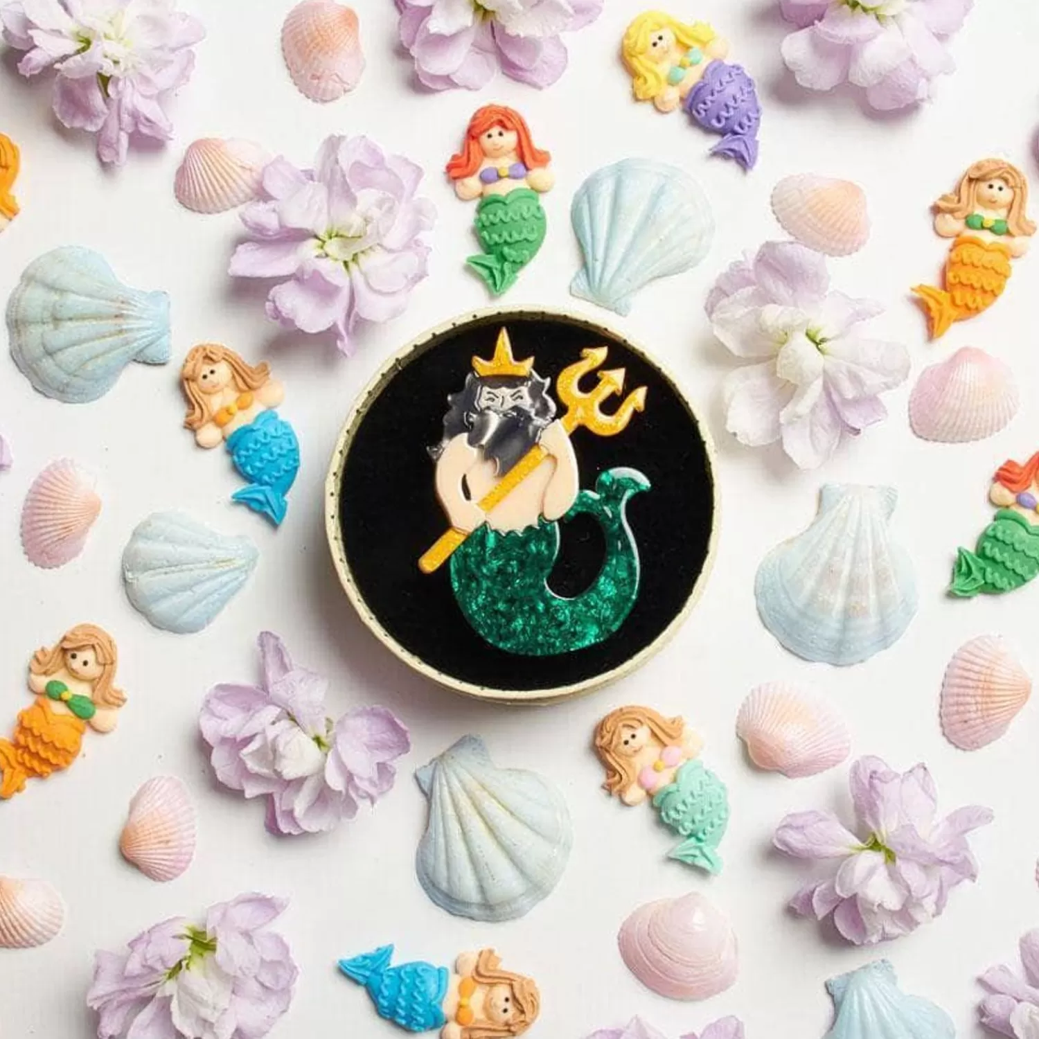 Some Call Him Neptune, Some Poseidon. Either Way, Erstwilder’S God Of Freshwater And The Sea Brooch Has Been Hand-Assembled From A Combination Of Glitter, Solid And Textured Resins And Features Hand-Painted Details. You Can Even Call Him Yours If You’Re Fast Enough.