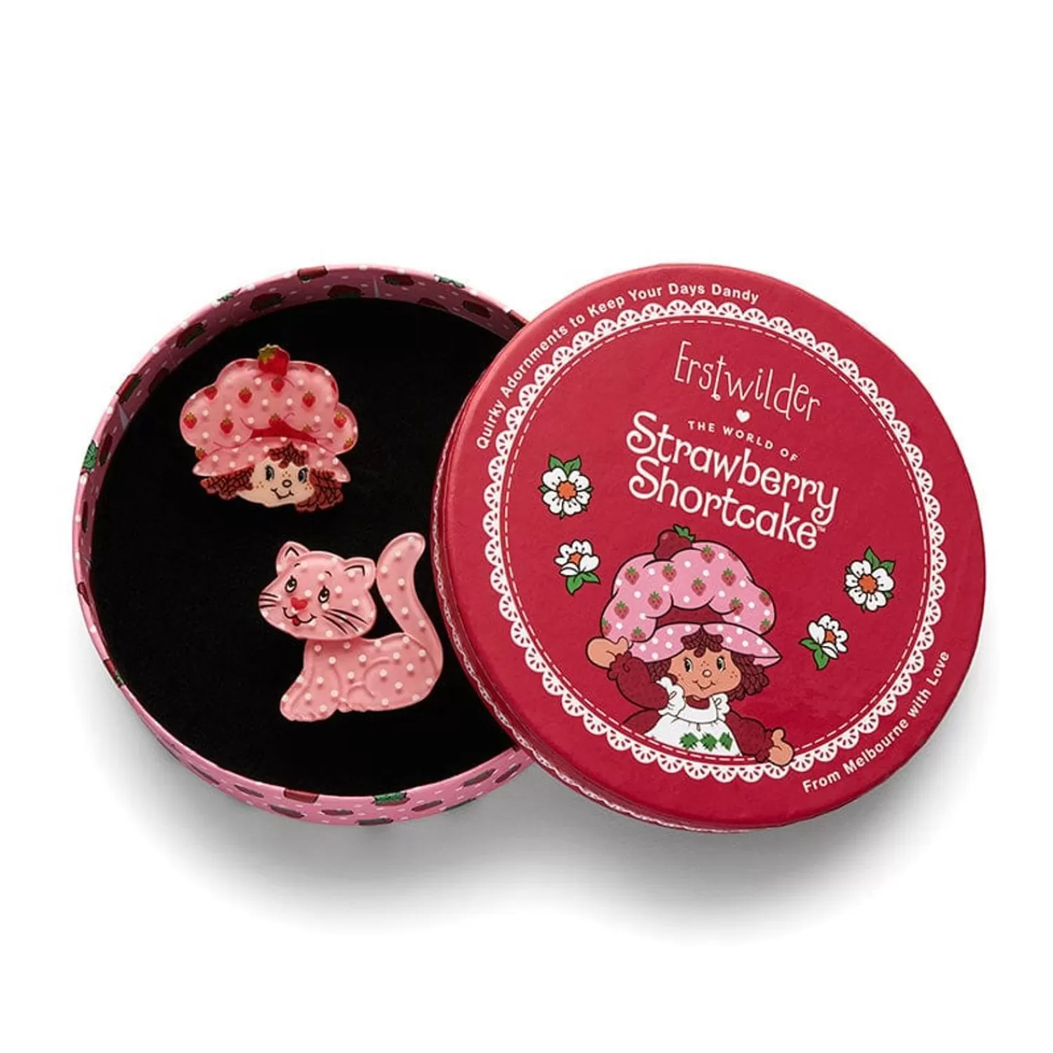 A Perfectly Complementary Pair, This Strawberry And Custard Hair Clip Set Combines Our Big Adorable Smile And Custard Cat Designs And Is Part Of Our Timeless, Officially Licensed Erstwilder X Strawberry Shortcake Collection. Hand-Crafted From Colourful Resins And Featuring Hand-Painting, Laser-Etching And Printed Detailing, This Vintage, 80S Era Duo Are A Match Made In Heaven.