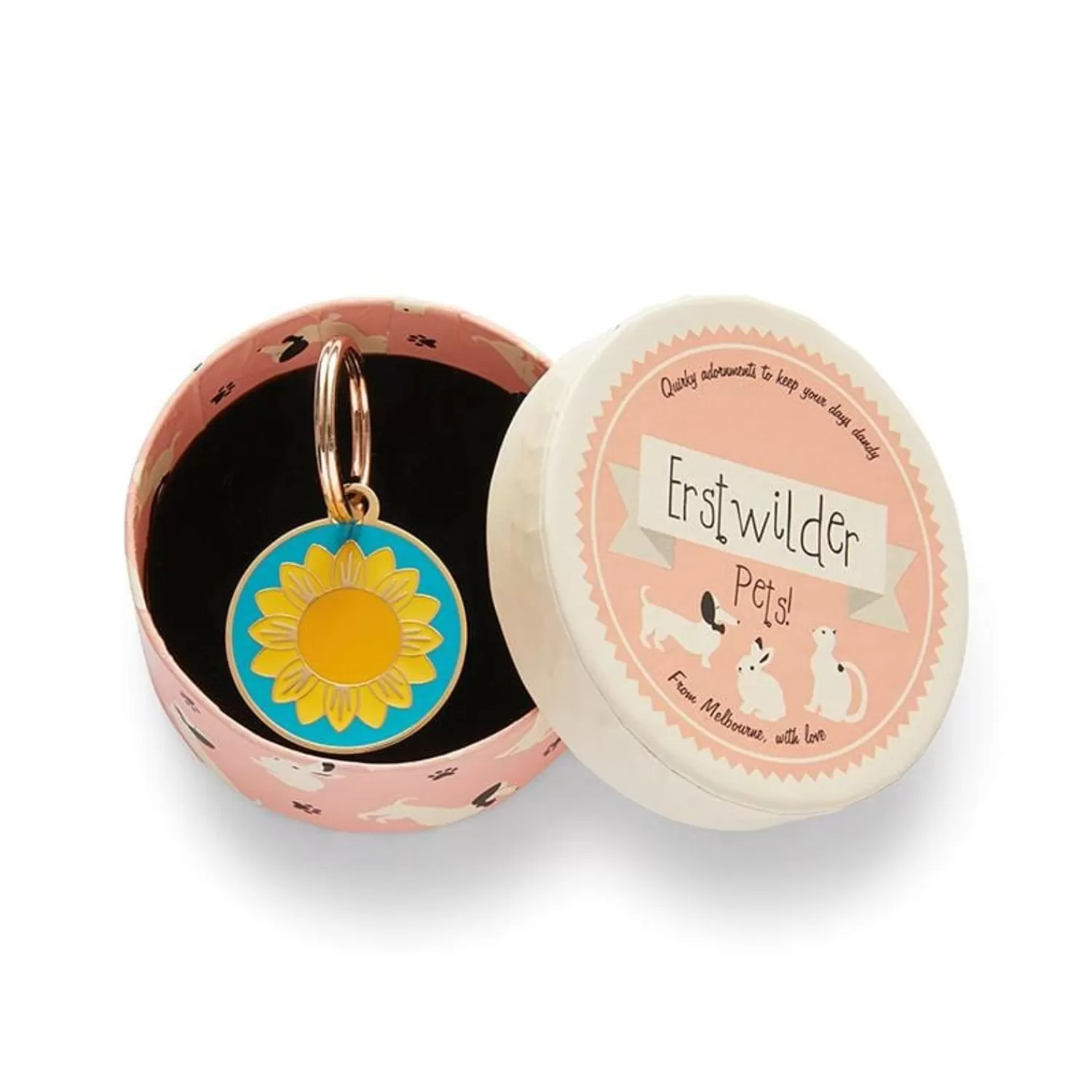 Made From Non-Allergenic Stainless Steel With Gold Plating And Featuring Hard Enamel, This Tag Is Waterproof And Suitable For All Indoor Or Outdoor Activity. The Reverse Side Features An Embossed Erstwilder Bird Logo But Leaves Space For Customisation, So You Can Easily Add Your Pets Name And A Contact Number. All Pet Charms Include A Split Keyring For Easy Attaching To Your Pet’S Collar. Don’T Have A Pet Or Just Love This For Yourself? That’S Fine Too! You’Ll Find This Pet Charm Doubles Perfect As A Mini Keyring Too. Collar Not Included.30Mm X 34Mm (H X W)Sumptuous Sunflower Enamel Pet Charm*Erstwilder Flash Sale