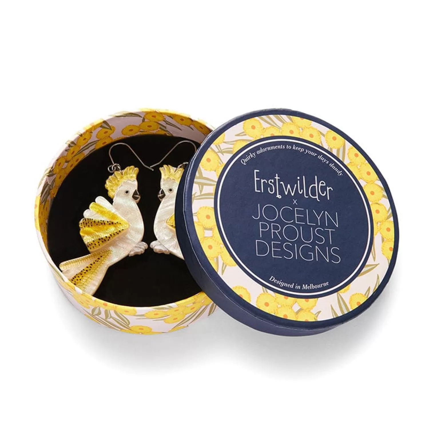 Hand-Assembled From A Selection Of Colourful Resins And Featuring A Combination Of Printed And Painted Details, These Sulphur Crested Cockatoo Earrings Are Part Of The Third Erstwilder X Jocelyn Proust Designs Collaboration. Companions For Life, This Sunny Of The Sulphur Crest Duo Pair Exceptionally Well With Their Matching Brooch And Hard Enamel Pin.