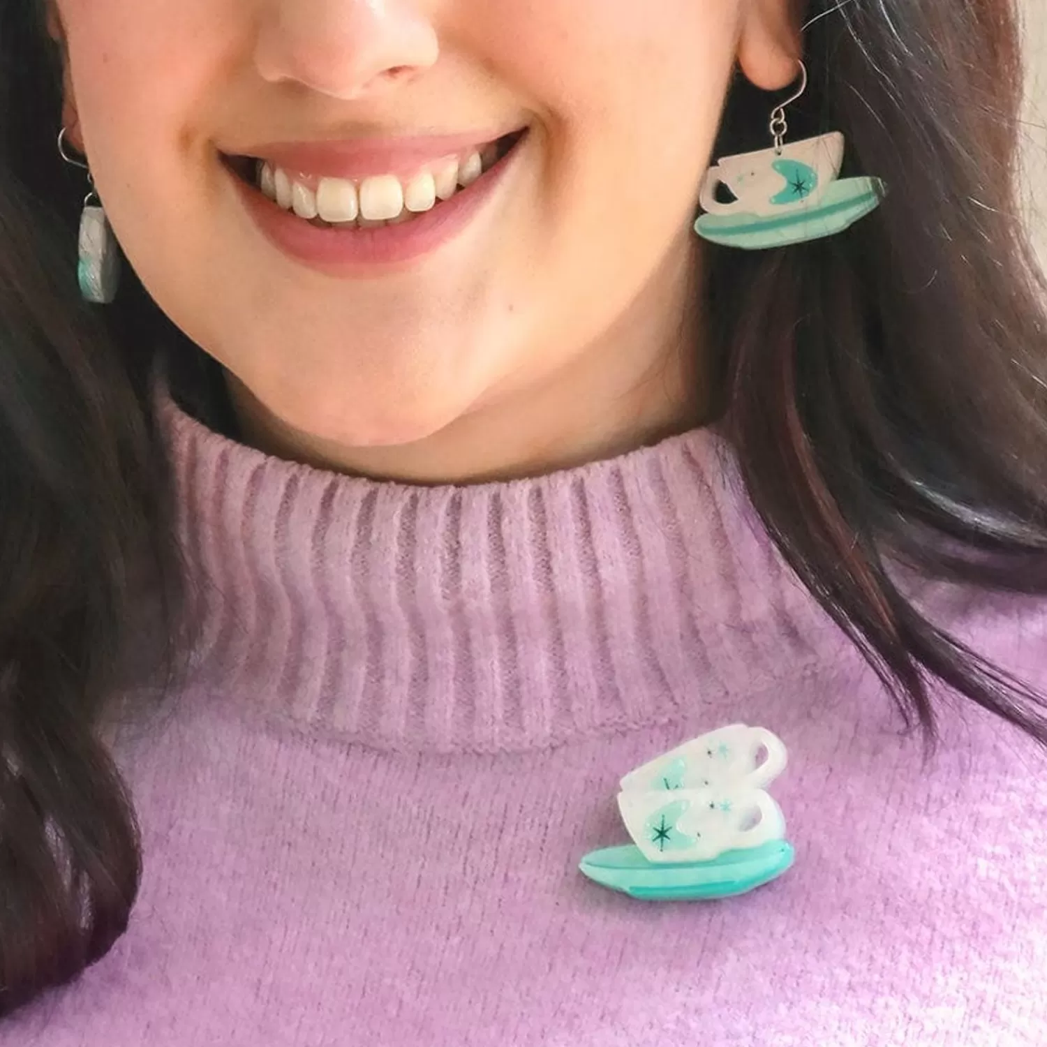 Step Back Into The Heart Of The Home With This Nostalgia-Inducing Atomic Cups And Saucers Brooch, Part Of The Second Vintage Kitchen Release. Hand-Assembled From Resin And Finished With A Combination Of Printing And Etching, This Retro-Future Tea And Sympathy Design Is Also Available As A Hard Enamel Pin.