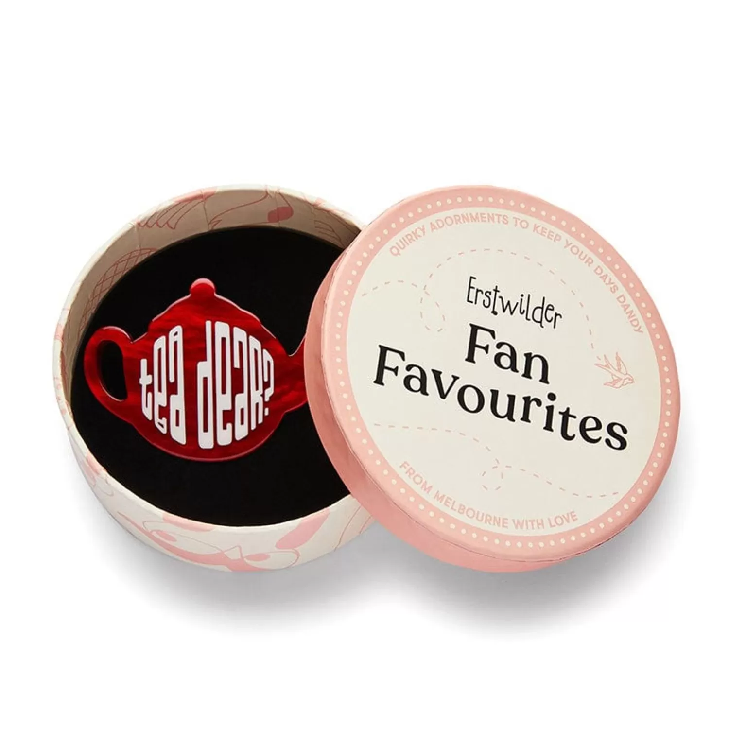 This 2024 Fan Favourites Edition Of Our Tea Dear Brooch Has Been Hand-Assembled From A Vibrant Red Resin Compete With Printed Letter Detailing. Originally Released In 2010 (Prior To Erstwilder Formally Adopting Its Brand Name) This Is The First Time The Design Has Been Updated And Recoloured, Making It The Official Second Edition. Wear It And Leave No One Questioning Your Preferred Drink Of Choice!