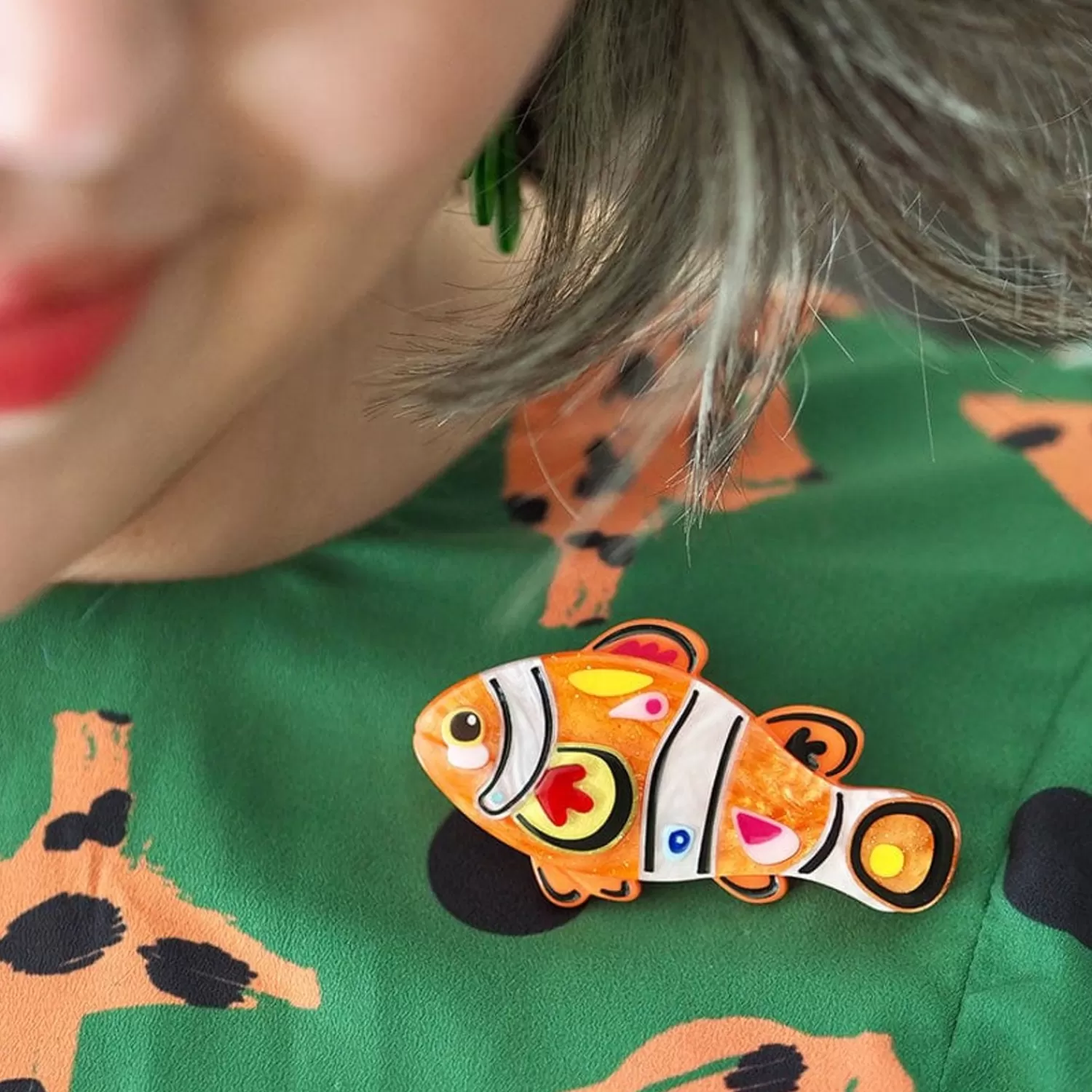 Stunning, Hand-Assembled Resins Bring This Colourful Clownfish Brooch To Life, Its Distinct Patterns Making It Easy To Find In A Fish Tank, The Ocean Depths, Or Pinned To Your Favourite Outfit. Part Of The Pete Cromer Australian Sea Life Collection, This Charming Swimmer Makes A Compelling Companion Piece When Paired With Our Coral-Inspired Essential Earrings Or Any Other Delightful Designs In The Range.