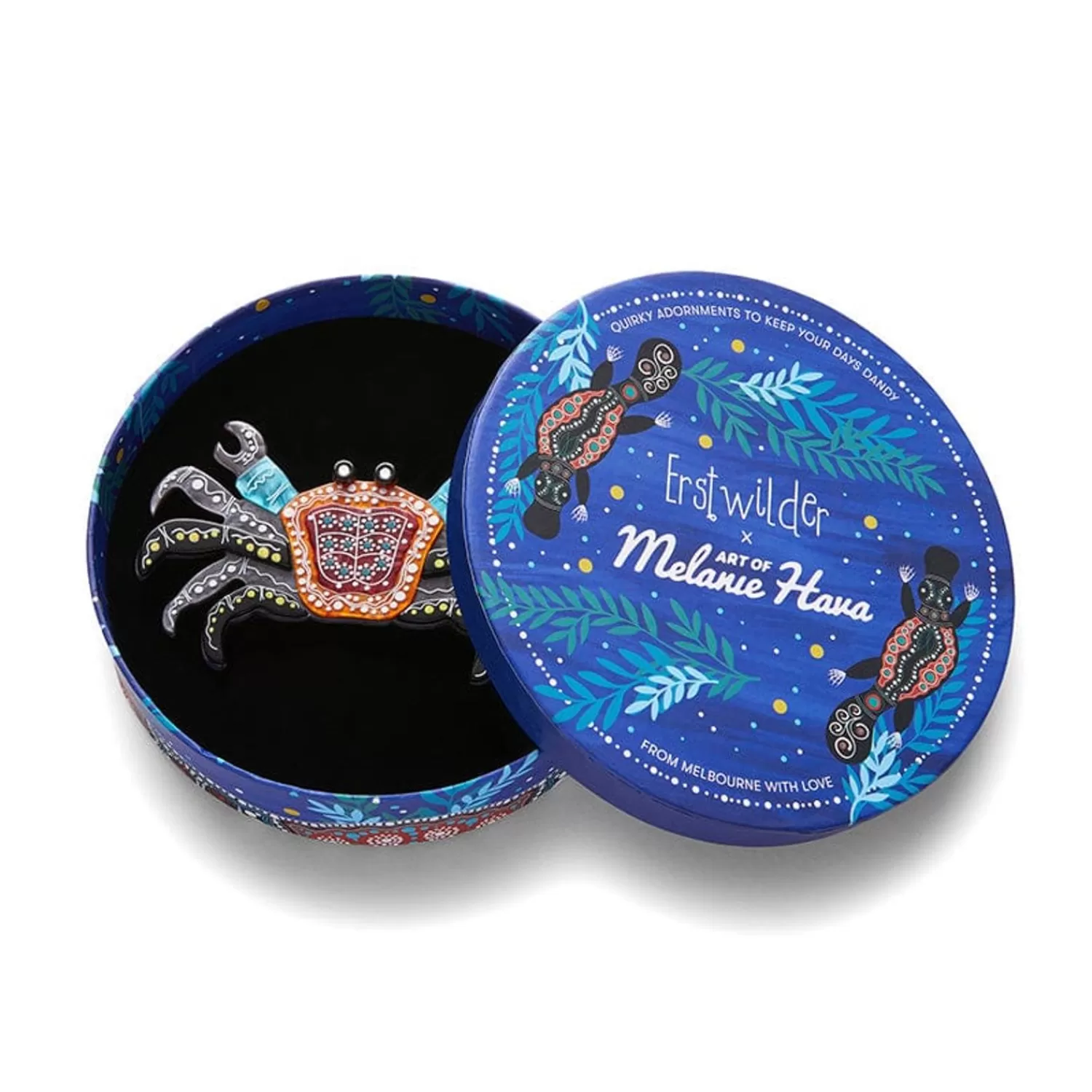 This Darling Crustacean Creation Is So Stunning, You May Just Have To Pinch Yourself To Believe It’S Real. Our Crab ‘Gadambal’ Brooch Is Sure To Scuttle Its Way Onto Your Lapel And Into Your Heart. This Unique And Detailed Design Is A Part Of Our Long-Awaited Collaboration With Aboriginal Artist Melanie Hava. Featuring Layered Resin With Hand-Finished Details, Melanie’S Incredible Art Has Been Taken Off Canvas And Brought To Life As Wearable Art.