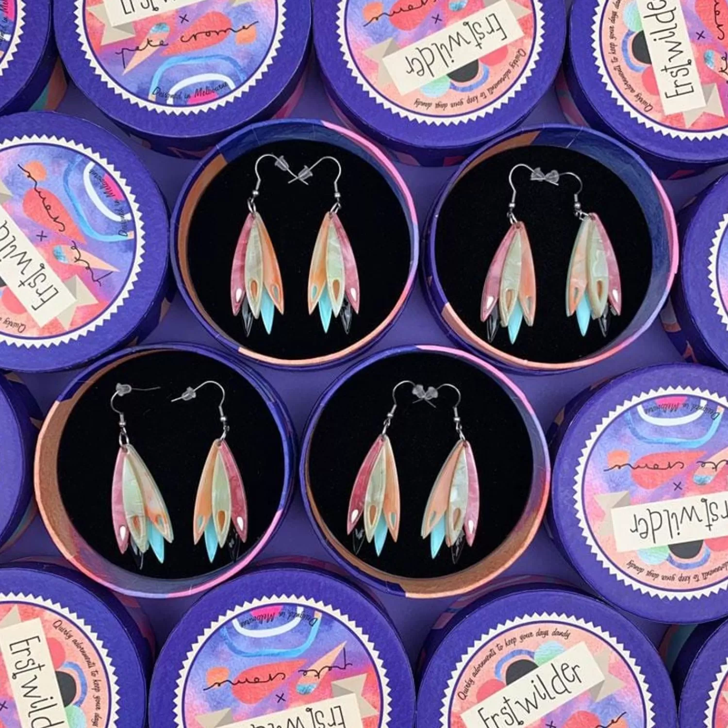 Back By Popular Demand, A Very Special Collaboration With Beloved Australian Artist Pete Cromer! These Standout Abstract Earrings Feature Beautiful Textured Resins, Inspired By The Elusive Echidna Brooch. Hand-Assembled With Care To Bring A New Twist To Your Pete Cromer X Erstwilder Collection!