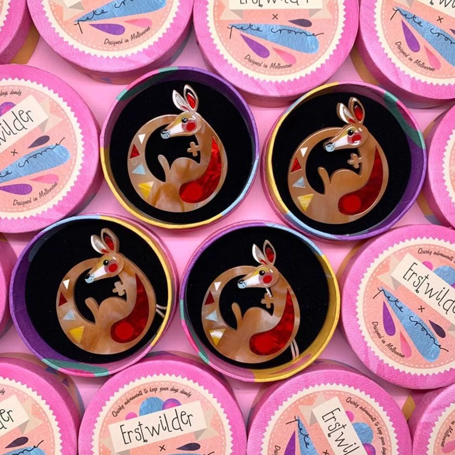 A Very Special Collaboration With Beloved Australian Artist Pete Cromer, This Brilliant Kangaroo Brooch Has Been Brought To Life From A Combination Of Marbled And Textured Resins. She’S Lovingly Designed, Hand-Assembled And Hand-Painted, And Has So Much Energy The Only Way She Know’S How To Use It Is To Give You A Big Hug.