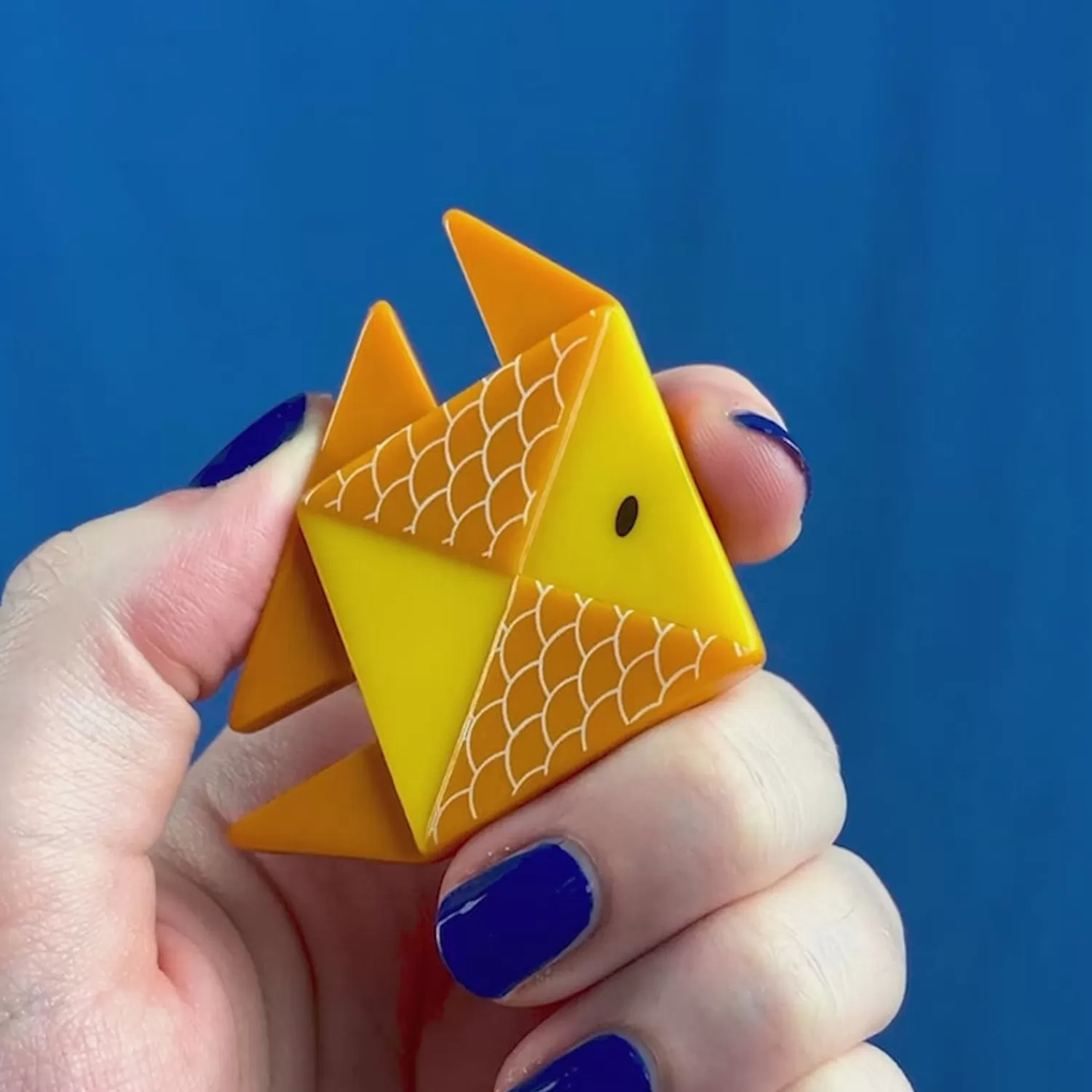 Hand-Assembled From A Carefully Chosen Mix Of Printed And Solid Resins, This Limited-Run The Memorable Goldfish Brooch Is An Adorable Eye-Catching Accessory. With The Expertly-Layered Resin Perfectly Emulating The Folds Of Origami Paper, You Can Put Memory-Related Myths To Bed By Pairing This With The Matching Earring And Hair Designs For A Look That Is Not So Easily Forgotten.