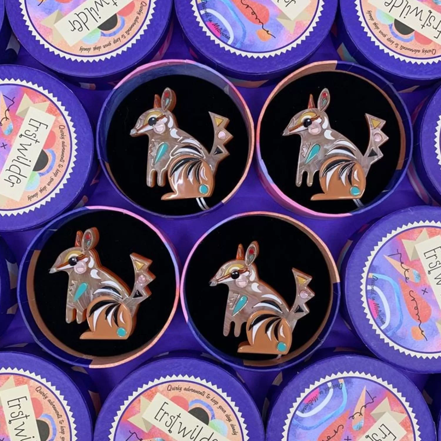 You’Ve Heard Of Our Notorious Numbat Brooch? He’S Well, Notorious. With A Veritable Rainbow Of Bold Textured Resins On A Bed Of Dreamy Marbled Tan, Erstwilder X Pete Cromer Features Hand-Assembled And Hand-Painted Details That Bring Fun And Colour To Your Accessories.