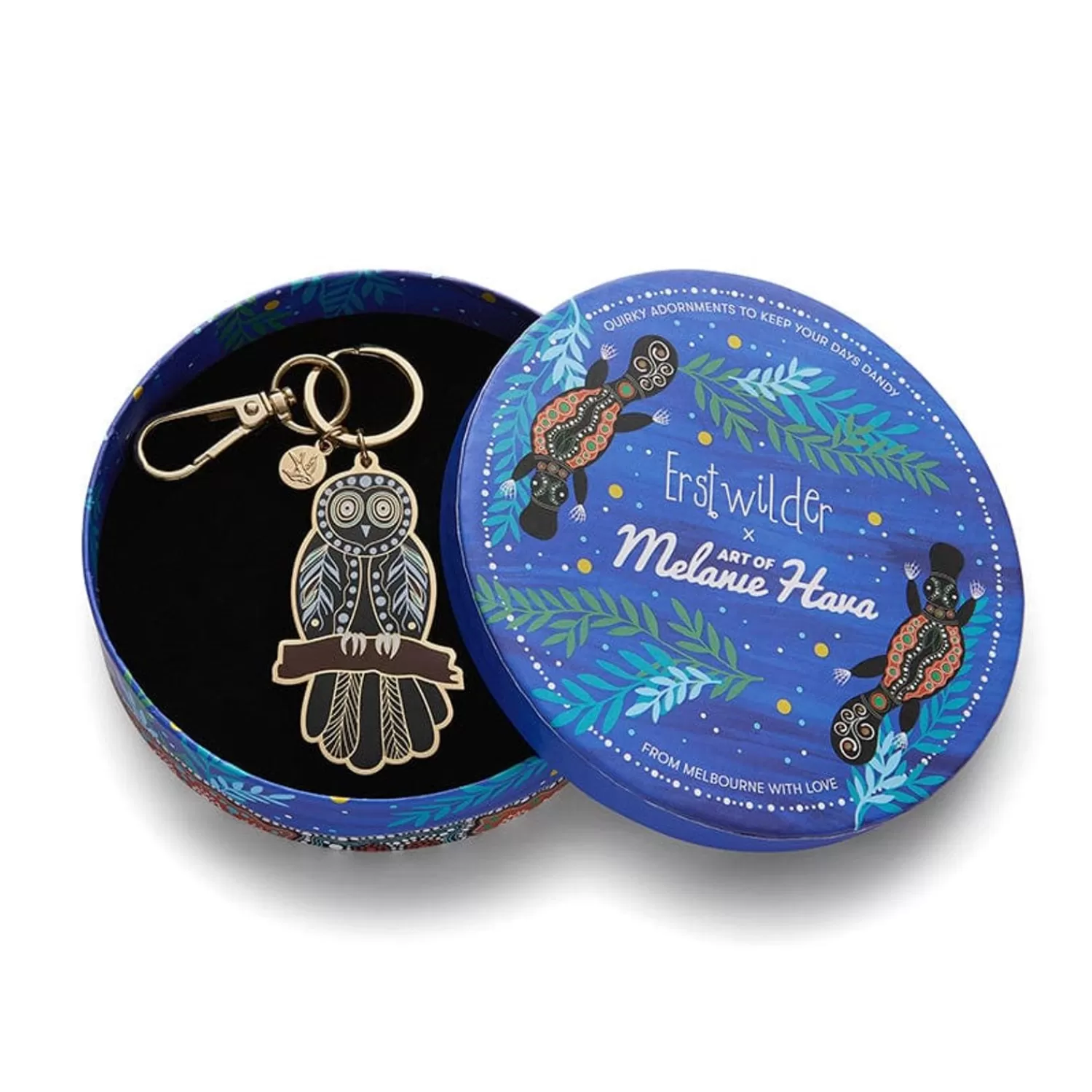 Whoo, Whoo, Whoo Is This Bright Eyed And Feathered Friend? Owl Tell You A Secret, It’S Our Owl ‘Gugu’ Key Ring, Ready To Fly With You Wherever You Go. This Gorgeous And Detailed Design Is A Part Of Our Long-Awaited Collaboration With Aboriginal Artist Melanie Hava. Made From Hard Enamel And Featuring Hand-Finished Details, Erstwilder Key Rings Just So Happen To Make Perfect Statement Sized Bag Charms.