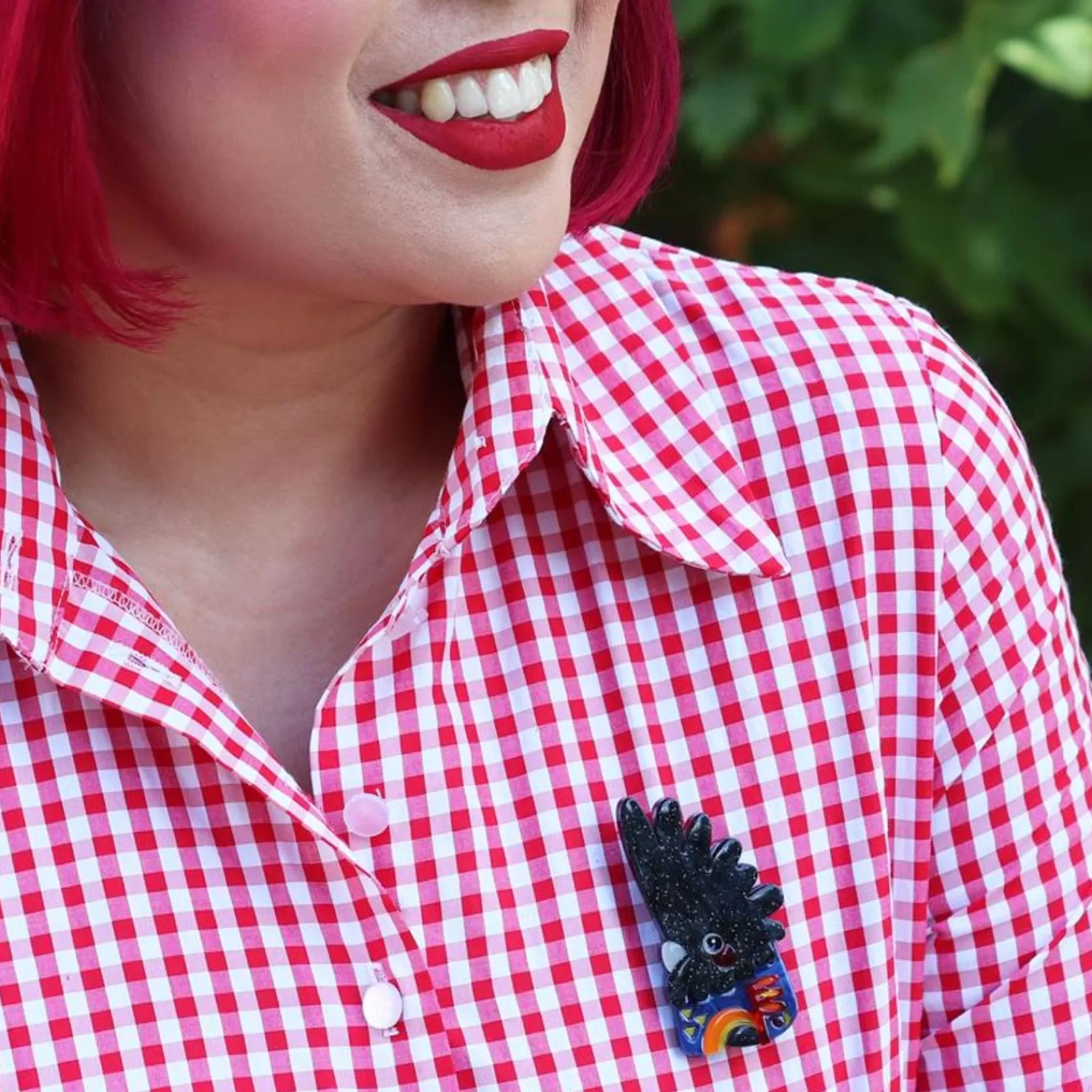 With A Bright Pop Of Colour, Our Rare Red-Tail Cockatoo Brooch Features Black Glitter Resin As A Wonderous Contrast To A Collection Of Bright Textured, Hand-Assembled Details. Somehow Both Demure Yet Energetic And Bold, Erstwilder X Pete Cromer Is All About Feathery Fashionistas!