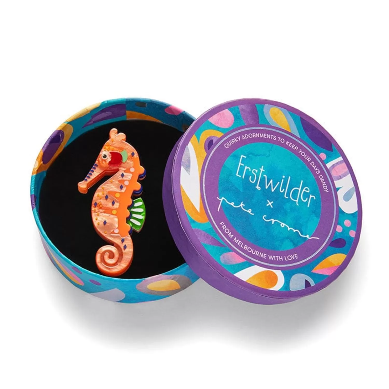 Elegant, Hand-Assembled Resins Bring This Western Australian Seahorse Brooch To Life, Its Preference To Blend In Set To The Side When Pinned To Your Favourite Outfit. Part Of The Pete Cromer Australian Sea Life Collection, This Humble Hippocampus Makes A Compelling Companion Piece When Paired With Our Nebulous Nudibranch Brooch Or Our Coral-Inspired Essential Earrings.