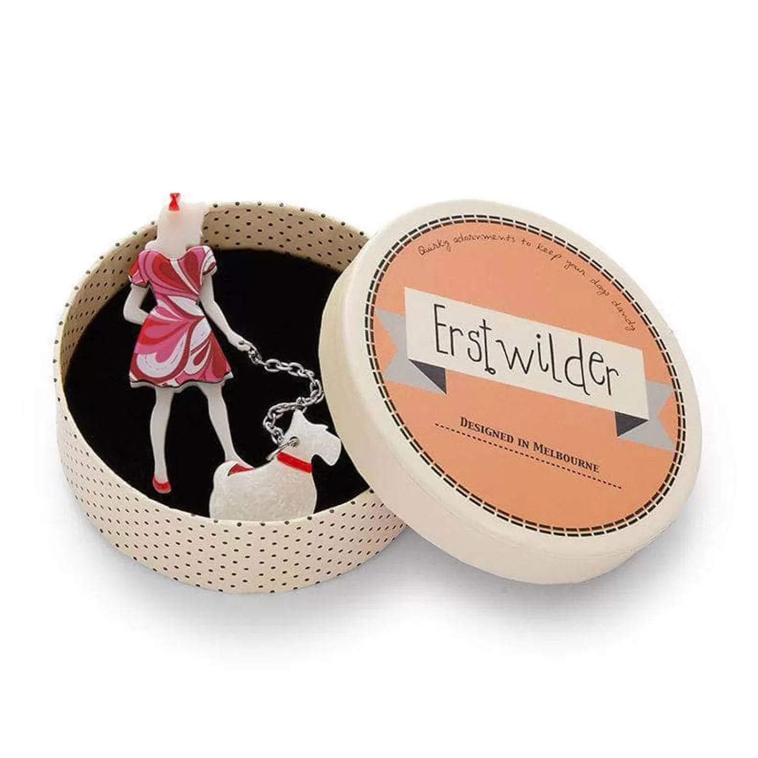 This Elegant Erstwilder Lady &Amp; Poodle Brooch Has Been Hand Assembled From A Selection Of Our Latest Patterned And Solid Resins. With Hand-Finished Details, Wear This Perfect Pair Whenever You’Re Out For A Walk.