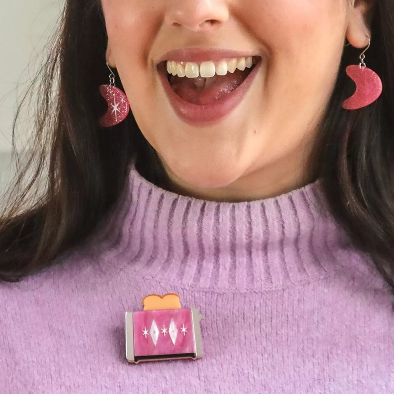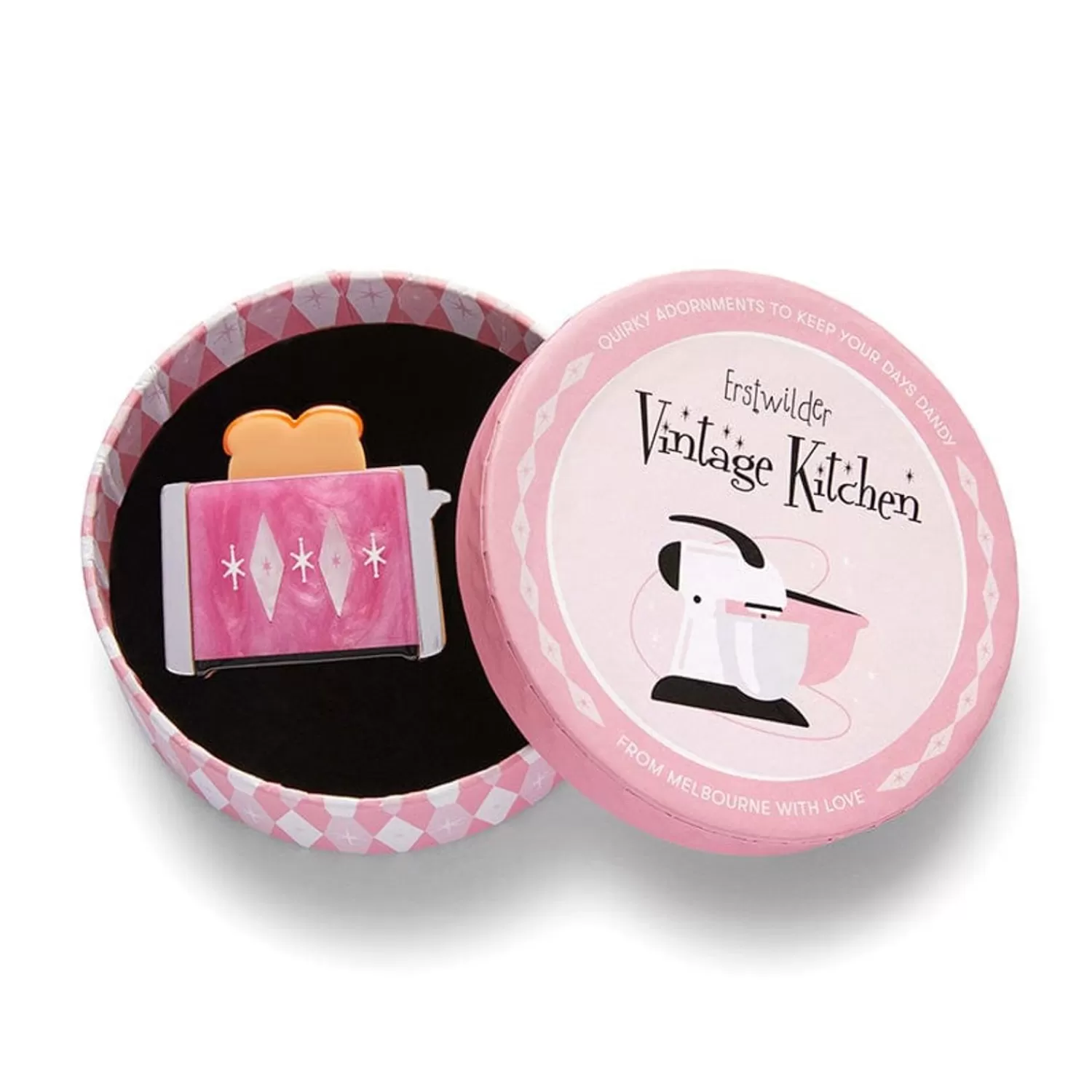 Step Back Into The Heart Of The Home With This Nostalgia-Inducing Atomic Toaster Brooch, Part Of The Second Vintage Kitchen Release. Hand-Assembled From Resin And Finished With A Combination Of Printing And Etching, This Retro-Future Warm And Toasty Design Is Synonymous With Home Comforts And Simple Pleasures.