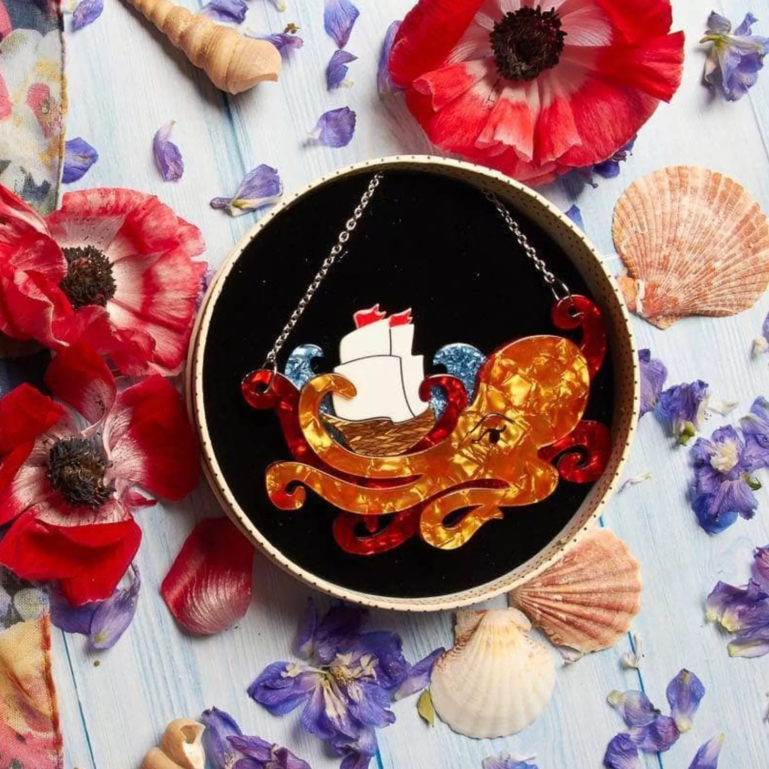 In Roaring Shall Rise Erstwilder’S Impressively Intimidating Kraken Statement Necklace, Hand-Assembled From A Selection Of Patterned, Solid And Textured Resins. With Hand-Finished Details, Legend Has It That The Best Way To Avoid It’S Grasp Is To Pay Homage With This Necklace.