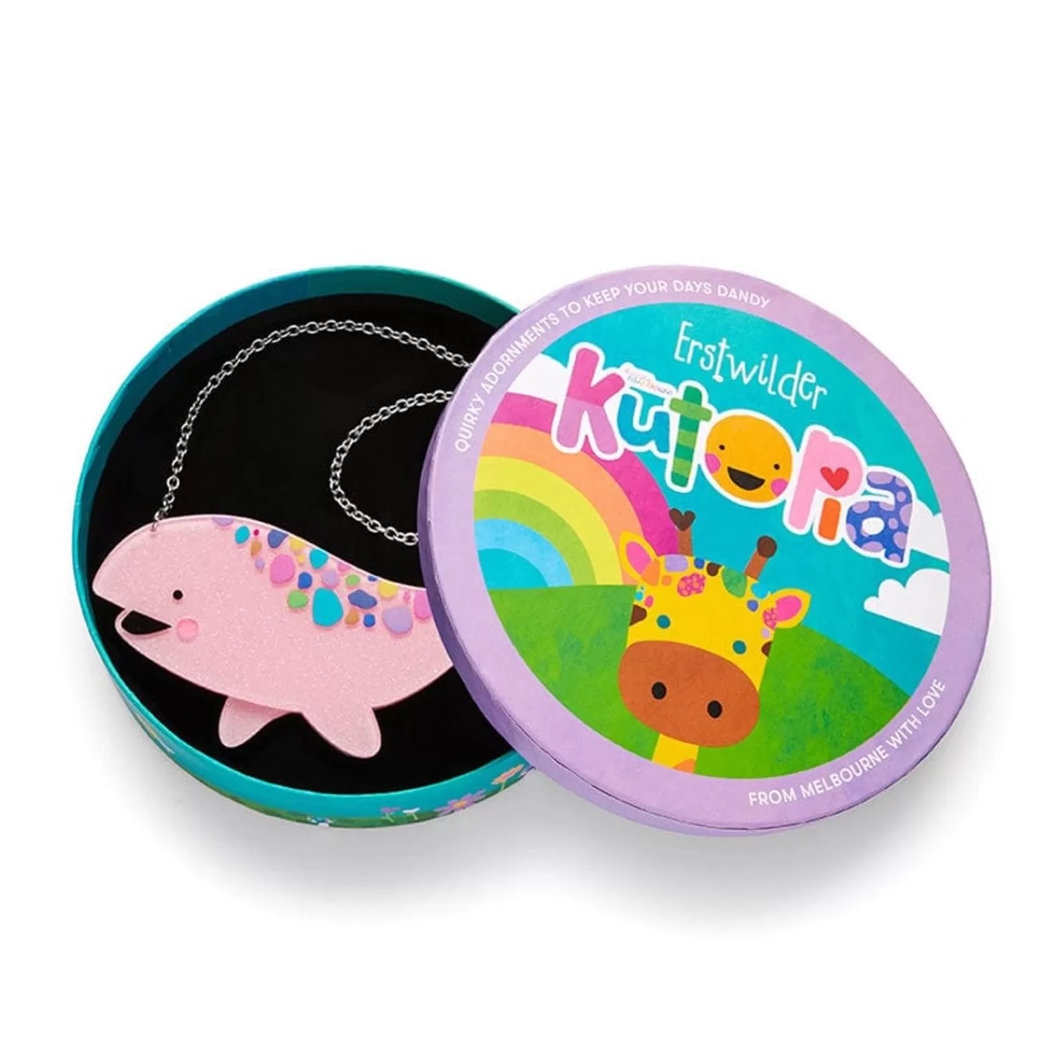 This Erstwilder X Kasey Rainbow Winnie The Whale Necklace Has Been Hand-Assembled From A Combination Of Colourful Resins And Finished With Hand-Painted Details. A Resident Of The Wonderful World Of Kutopia, Winnie Is Always Awash With Ideas. Wear Her With Her Matching Brooch Whether You’Ve Got A Plan For The Day Or Happy To See Where It Takes You.