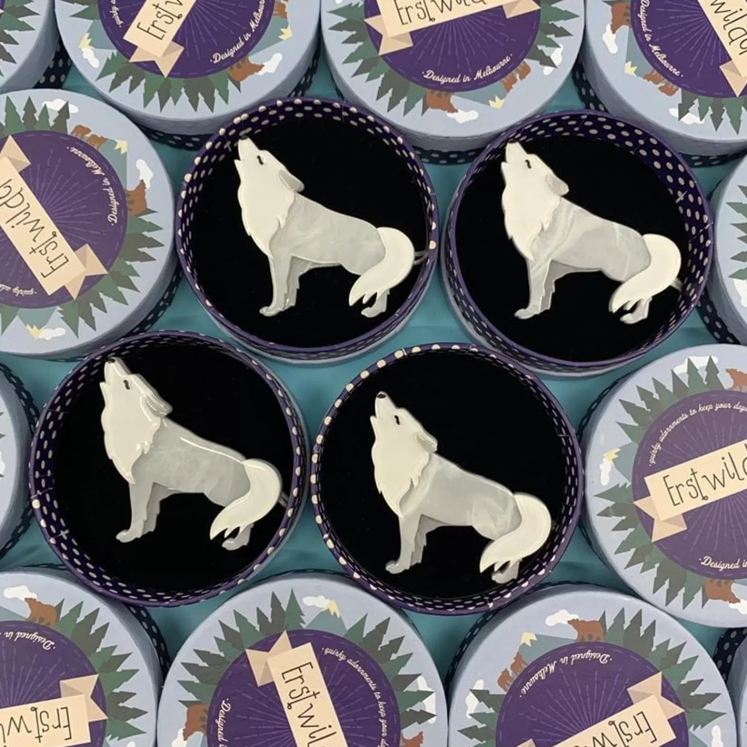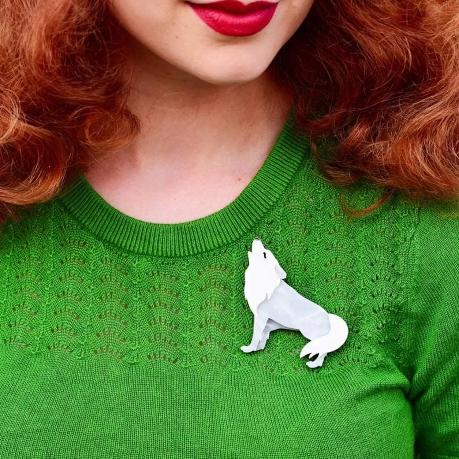 Just A Regular Wolf In Wolve’S Clothing. With Gorgeous White Marble And Bubble Resins This Hand-Assembled And Hand-Painted Piece Is Sure To Make Your Outfit Stand Out From The Rest Of The Pack! A-Woooo!