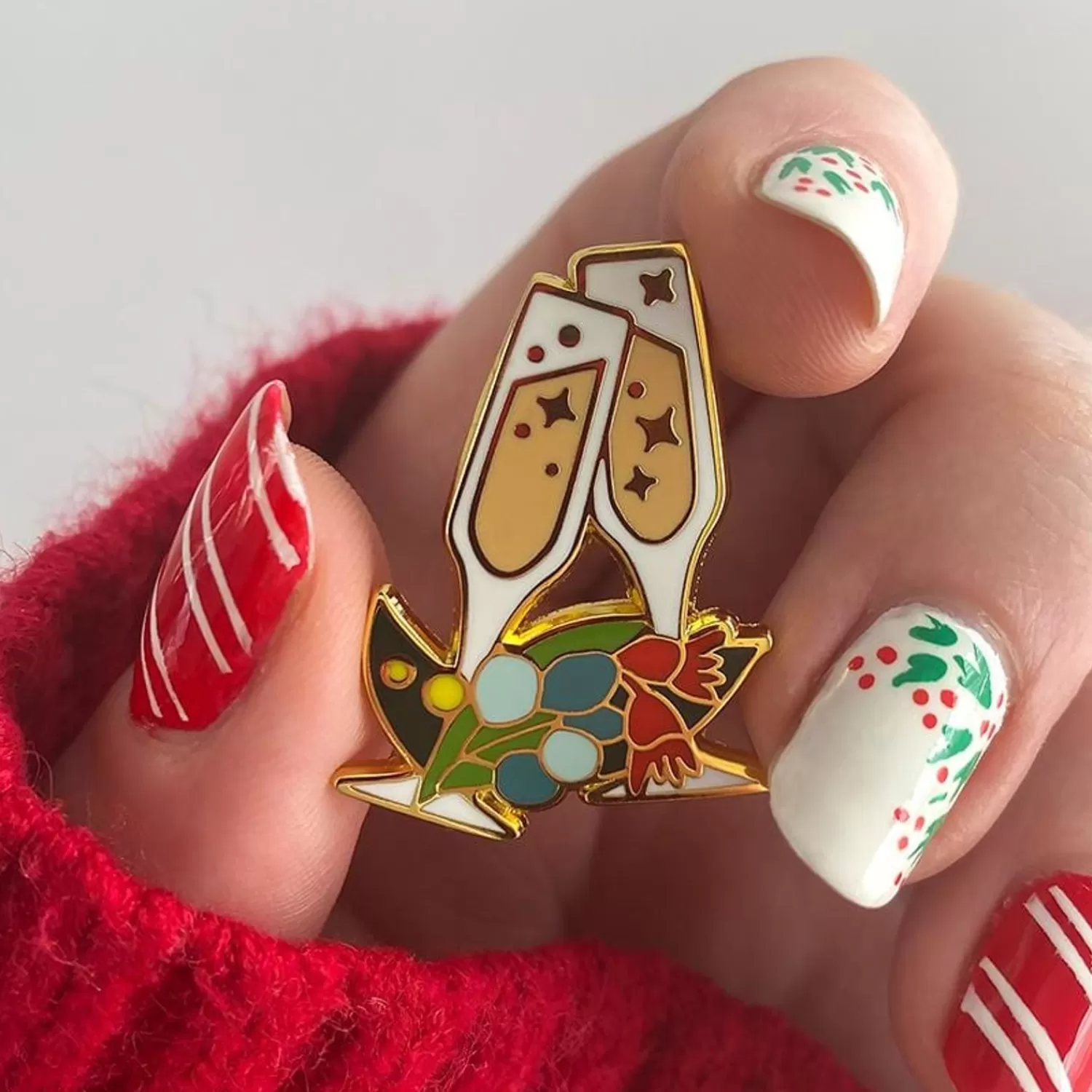 Raise Your Glasses To Christmas And Sparkles, This Champagne Flutes Pin Is Made From Hard Enamel.