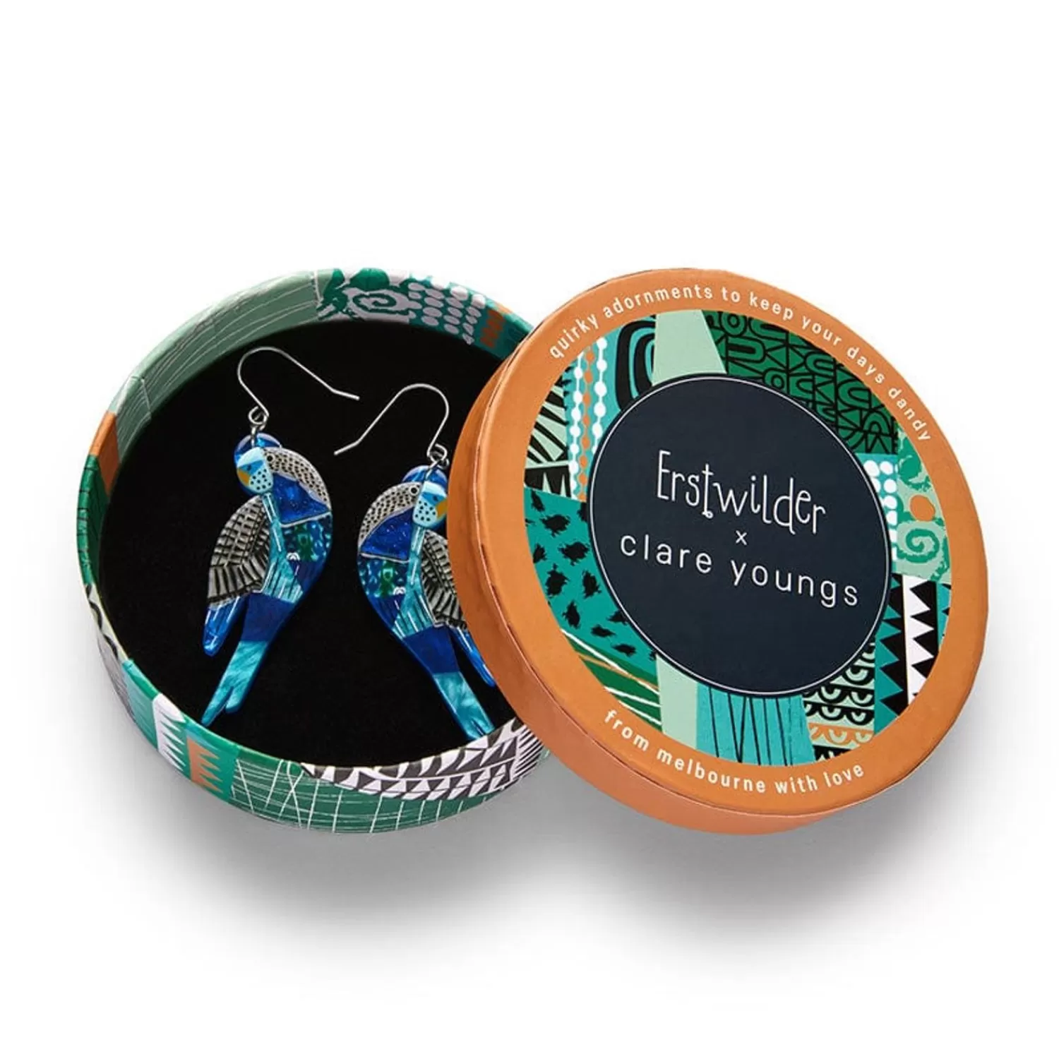 This Just Might Be The Craftiest Erstwilder Collection Yet! Part Of A Collaboration With Gifted Craft Author, Illustrator, And Collage Artist, Clare Youngs, These Limited-Run Budgie Drop Earrings Have Been Hand Assembled Featuring Brilliant Blue Textured And Glitter Resins And Completed With Hand Painted And Printed Detailing, Bringing Clare’S Work To Life As Wearable Art! Pair It With It’S Matching Brooch To Complete The Look, While Stocks Last.
