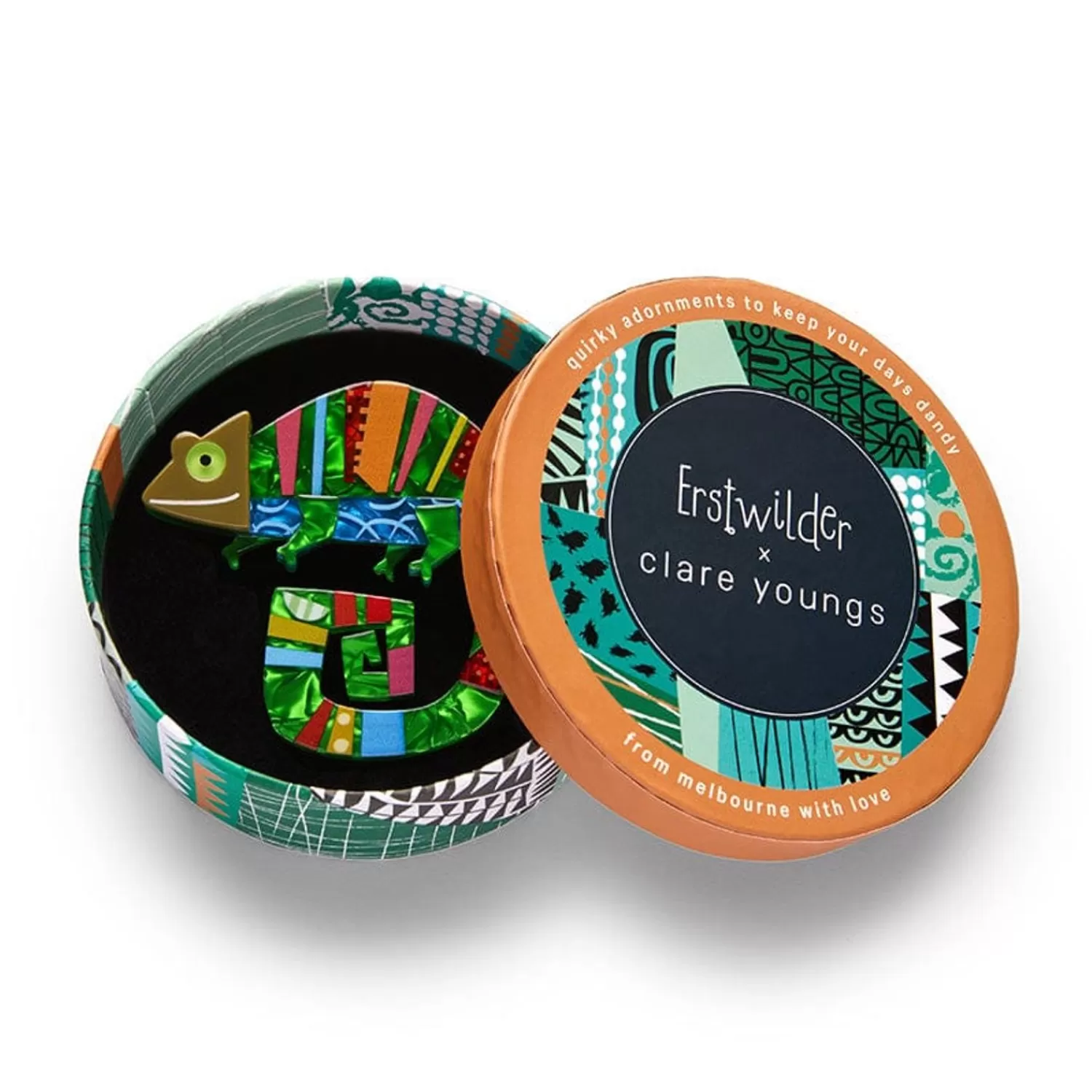 This Just Might Be The Craftiest Erstwilder Collection Yet! Part Of A Collaboration With Gifted Craft Author, Illustrator, And Collage Artist, Clare Youngs, This Limited-Run Camouflaged Chameleon Brooch Has Been Hand Assembled From A Mix Of Textured Resins And Completed With Hand Painted And Printed Detailing, Bringing Clare’S Work To Life As Wearable Art!