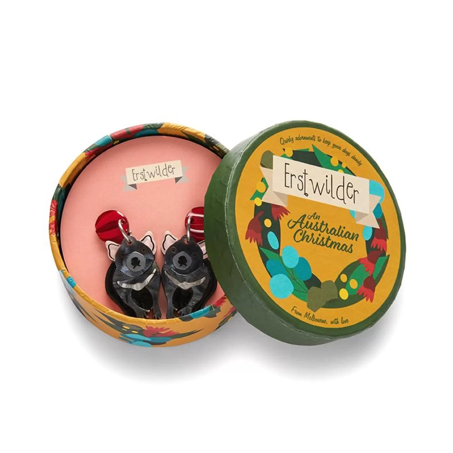 Hand-Assembled From A Christmassy Combination Of Resins, These Tassie Devil And Christmas Bauble Earrings Are Adorable, Even If They Aren’T Life-Size, In Either Case.