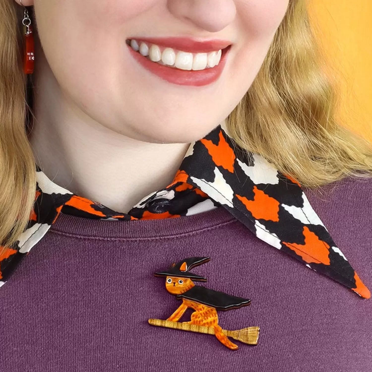 This Erstwilder X Terry Runyan Halloween-Themed Cat Brooch Has Been Hand-Assembled From A Combination Of Textured Resins. With Hand-Painted And Laser-Etched Details Adding Just The Right Amount Of Quirky Character To This Wearable Art Accessory, Bed Knobs &Amp; Broomsticks Is A Frighteningly Fun Way To Upgrade Your Outfit.