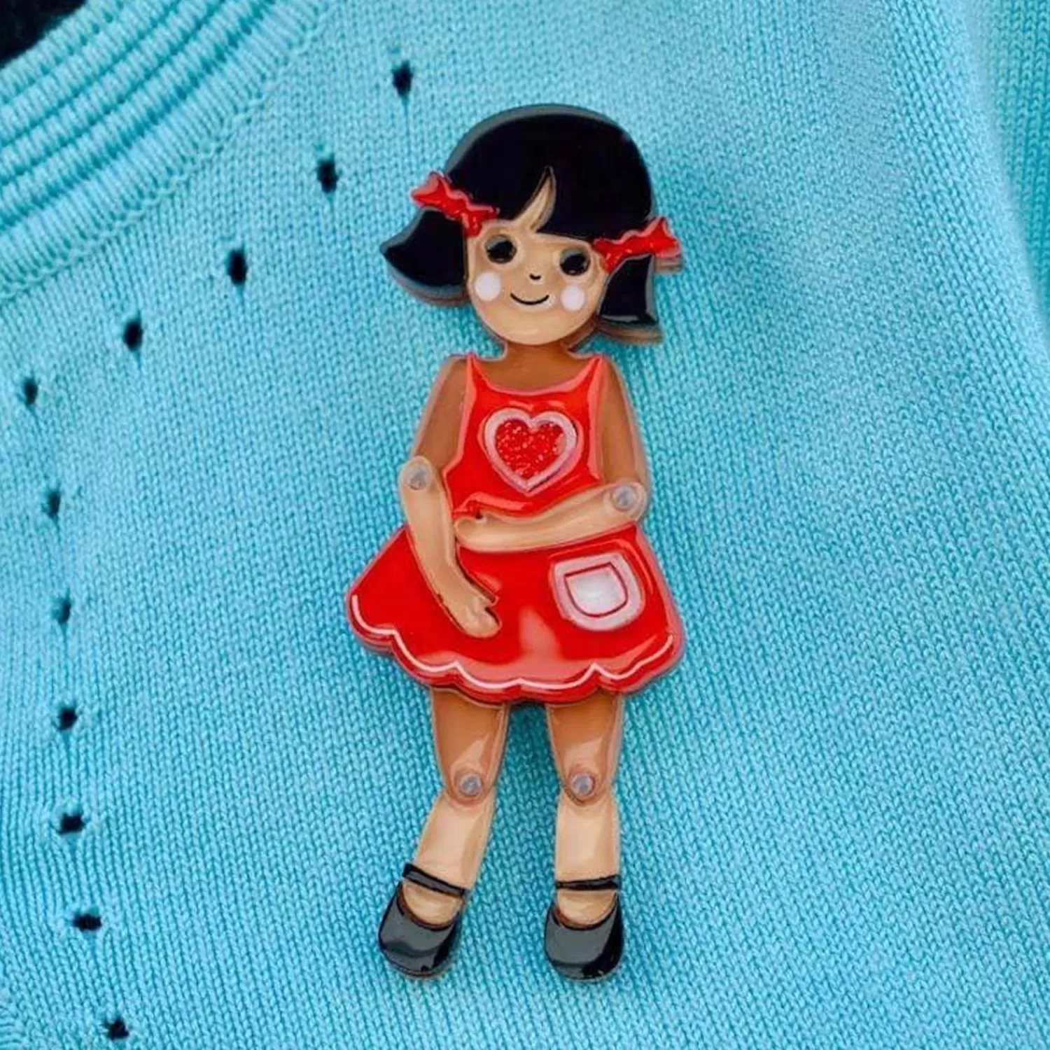 An Articulated Doll Like Our Bendy Wendy Can Do Just About Everything A Real Kid Can! Our Brooch Has Been Hand-Assembled From A Combination Of Glitter And Solid Resins And Features Hand-Painted Details Which Will Help Wendy Bring Your Outfit To Life, But Not Her, Not Without Some Serious Wishing.Original Designer Carmen Hui
